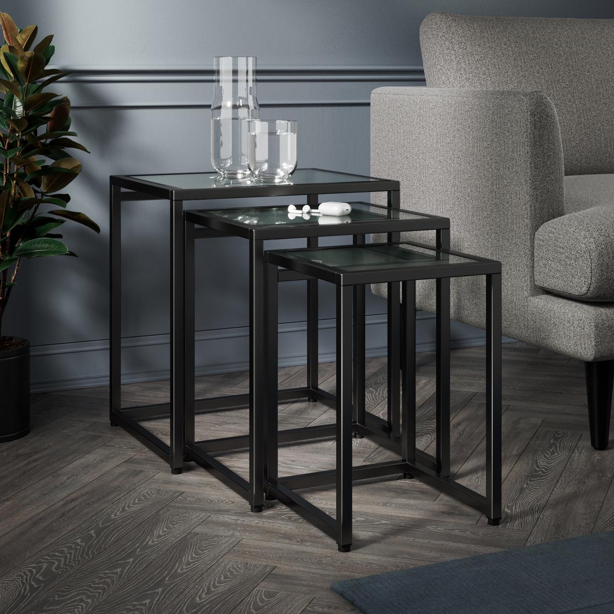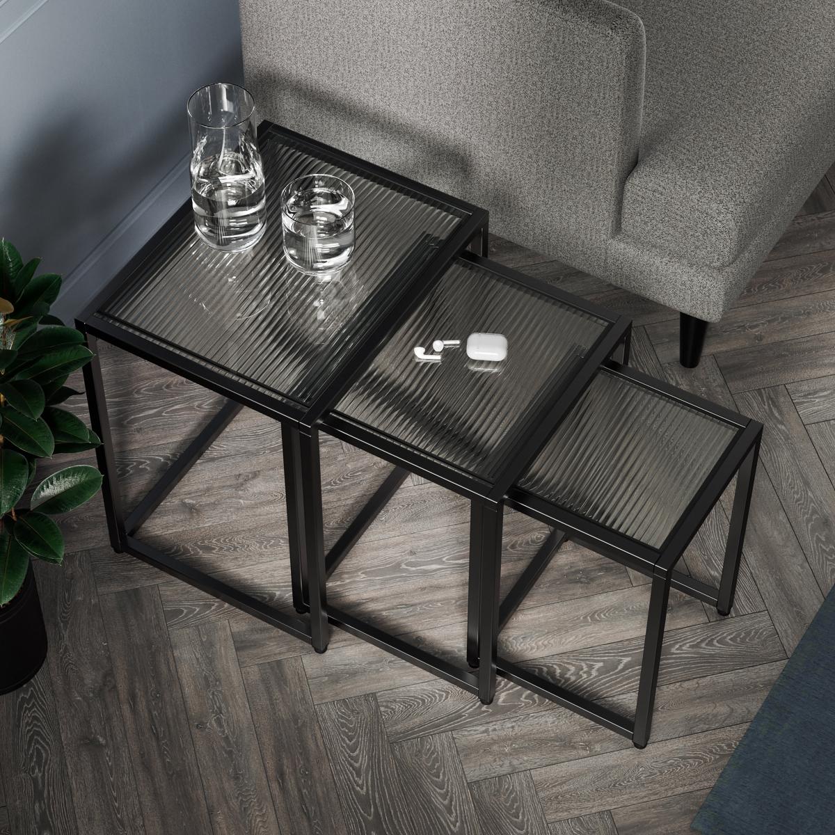 Stannis Nest of Tables Black, Ribbed Glass Black