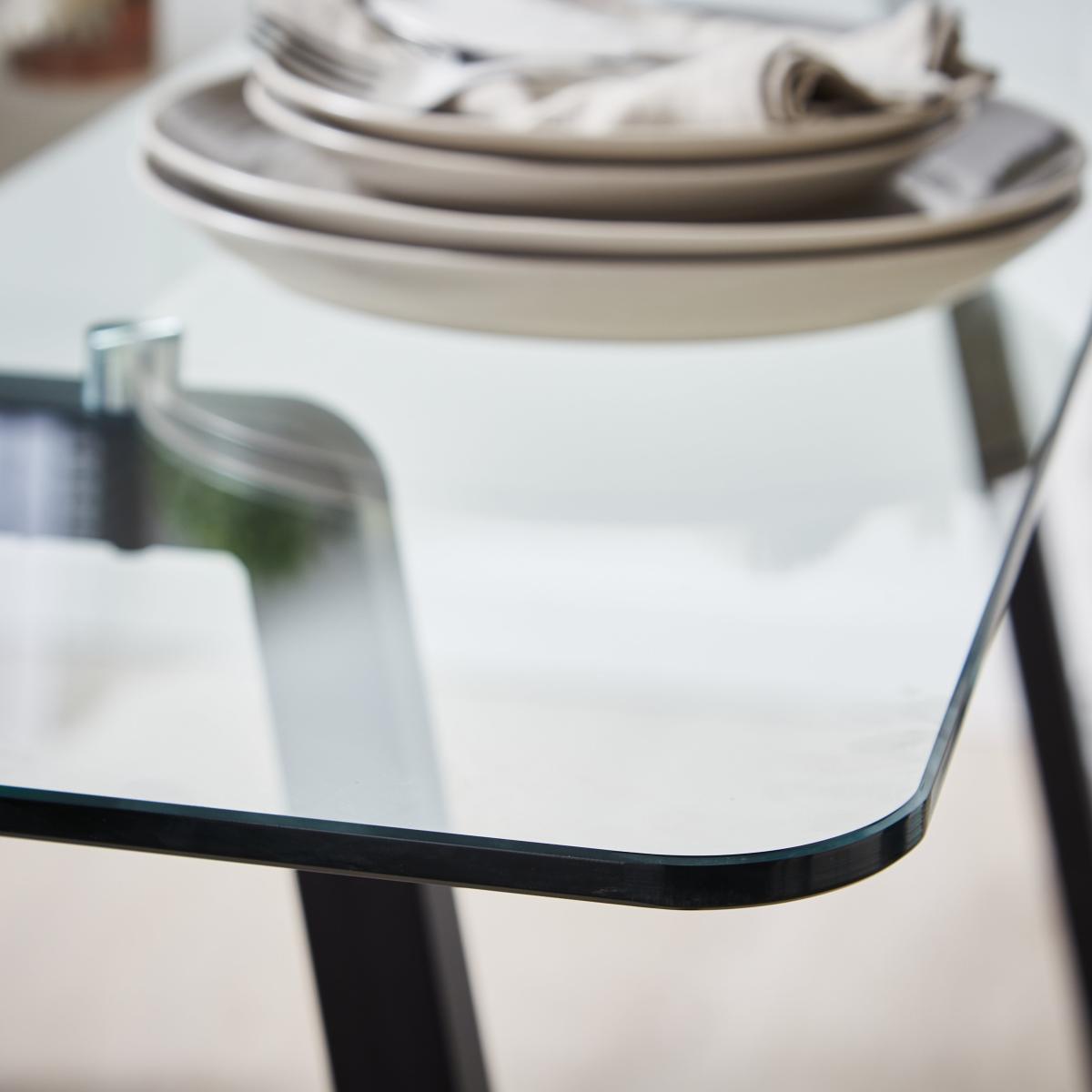 * Dining furniture bundle* In this bundle, you'll receive: 1 x Stannis Dining Table, 4 x Marcela Dining Chairs* Timeless, stylish design* Seats up to 6. With its sleek, modern design the dining table looks great in the centre of any space and can comfortably seat up to 6 people. The heavy duty steel legs give this table an industrial edge, while the glass top is easy to wipe clean. The chairs feature foam-filled cushions that provide exceptional seating comfort, allowing you to savour your meals in ultimate relaxation.
