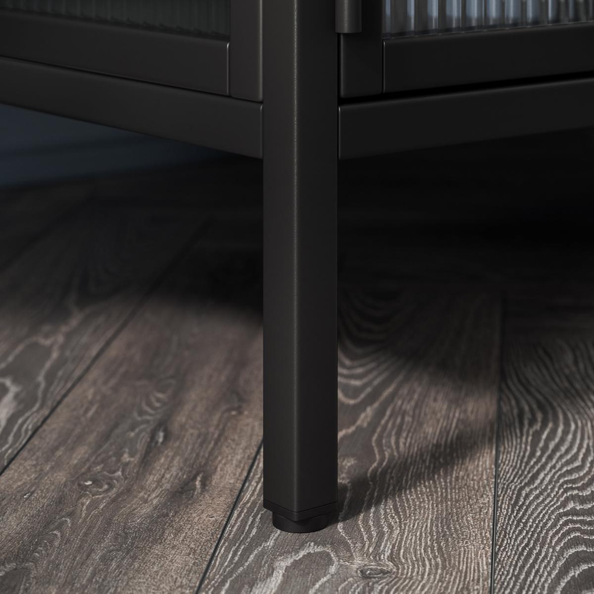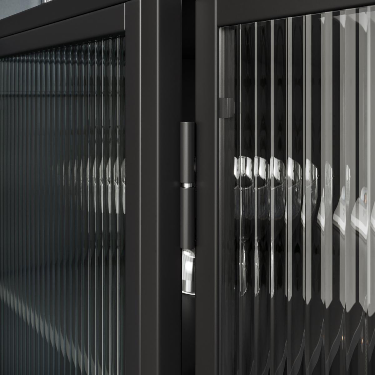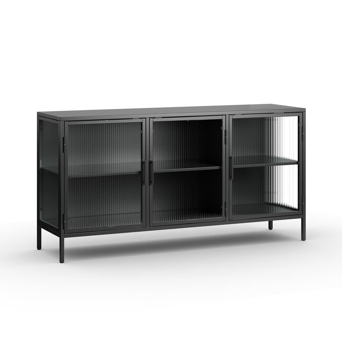 Feast your eyes on our amazing Stannis sideboard! With 6 spacious shelves, this piece is perfect for storing all your dinnerware, table linens, and other dining room essentials. The powder-coated steel frame and ribbed tempered glass give the sideboard an industrial-inspired design that will elevate any modern home.
