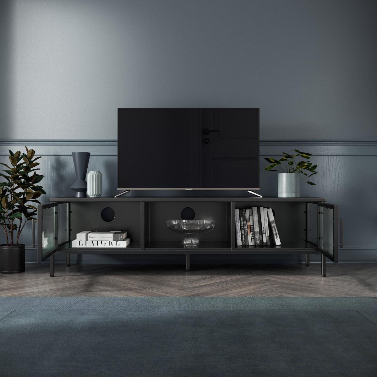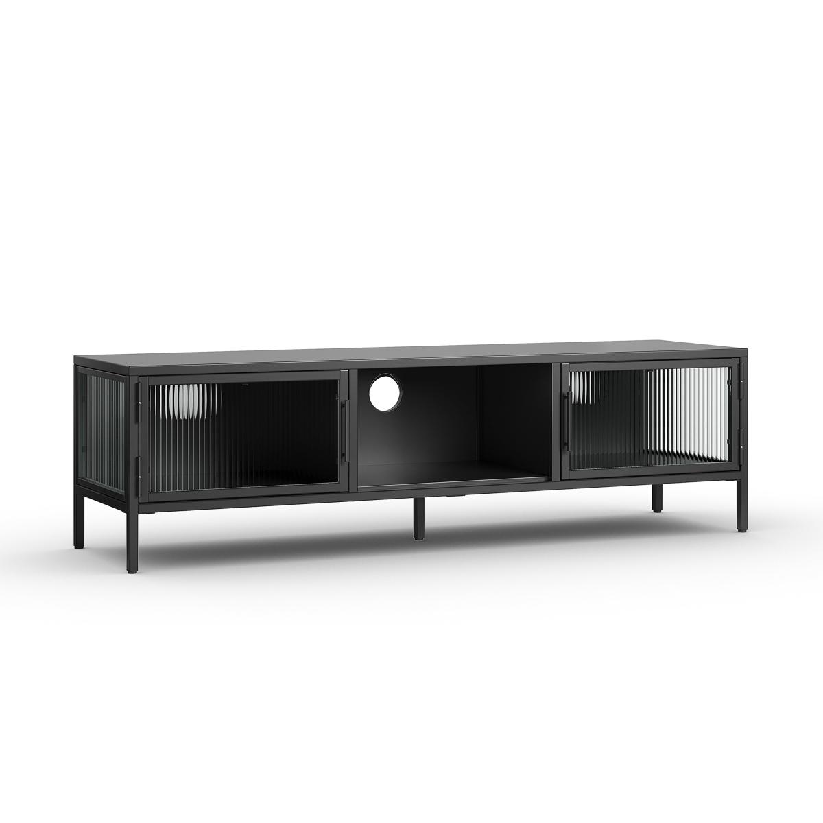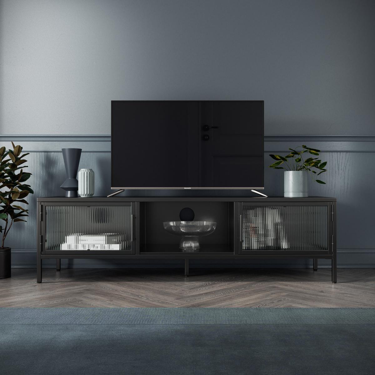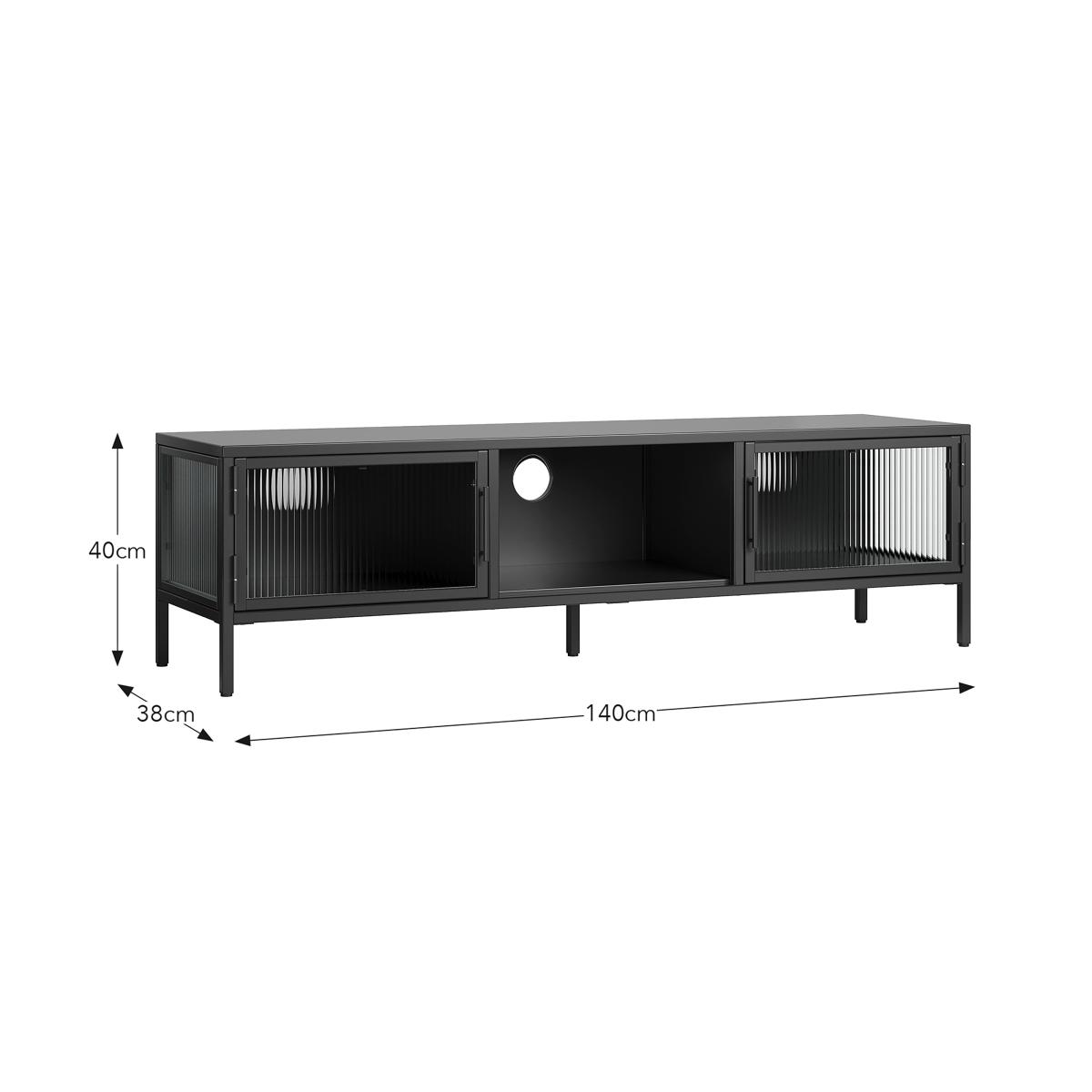 Stannis Wide TV Unit Black, Ribbed Glass Black
