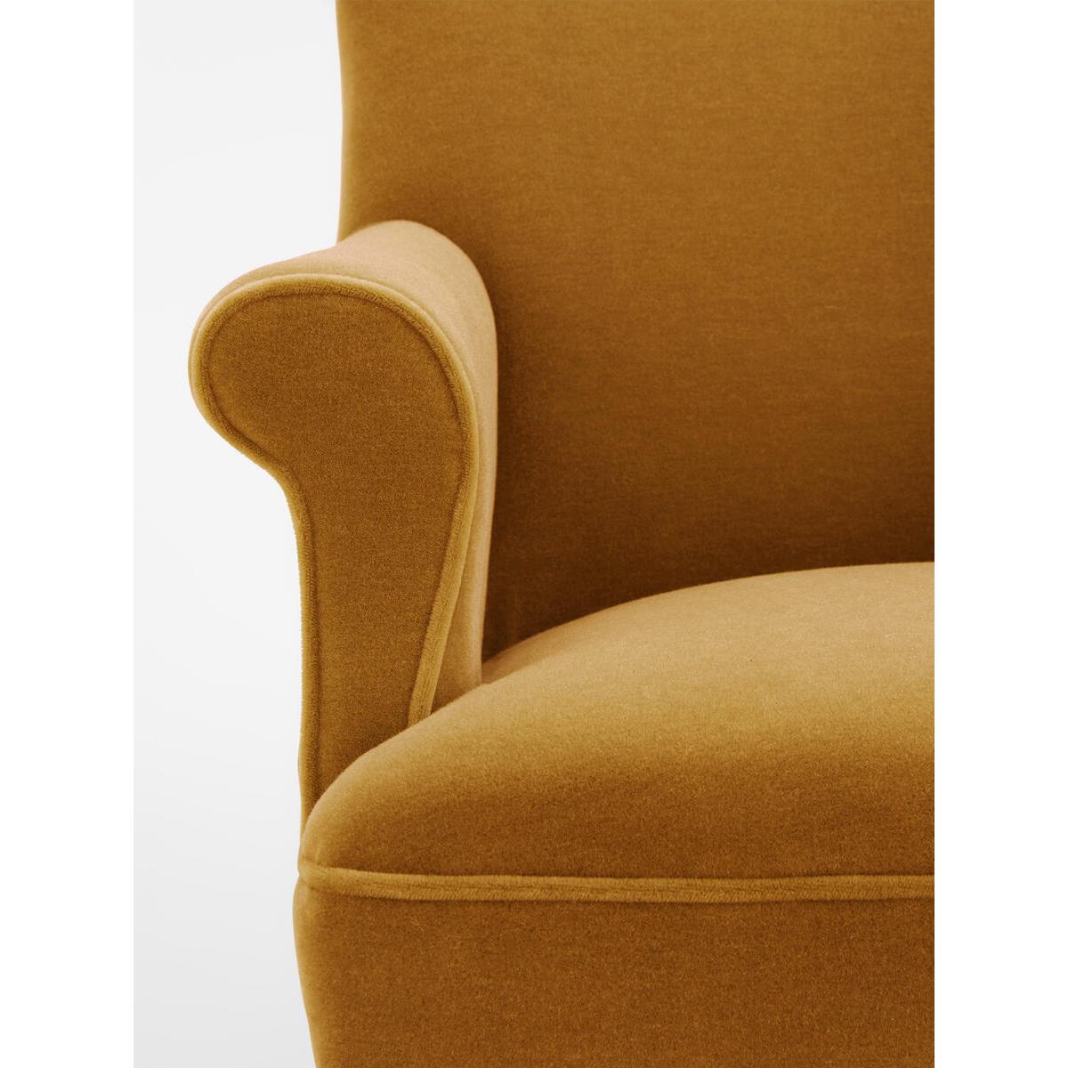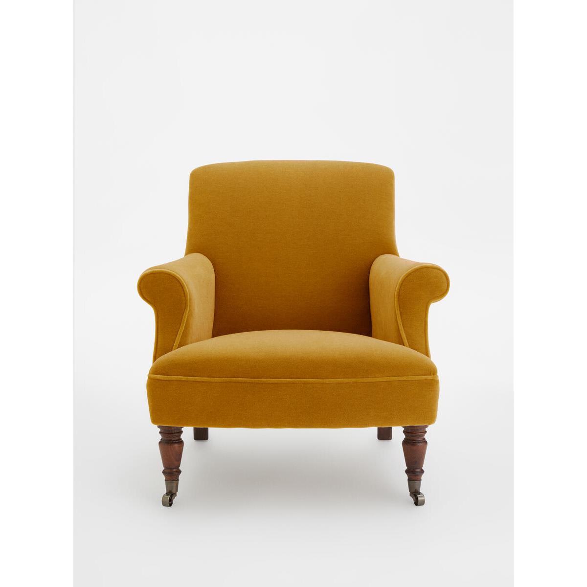The Stanton armchair in mustard mohair is a statement piece that instantly adds warmth and character to any space. I love how its classic silhouette combined with luxurious fabric creates a timeless appeal, making it versatile enough for both traditional and contemporary interiors. It works particularly well in cosy corners, living rooms, or reading nooks where comfort is key. For styling tips, consider pairing it with neutral tones and layered textures to highlight the richness of the mohair, or add contrasting cushions for a touch of visual interest. Because of its bold colour, it’s best to let this chair be a focal point and keep surrounding decor more subdued to let it truly stand out.