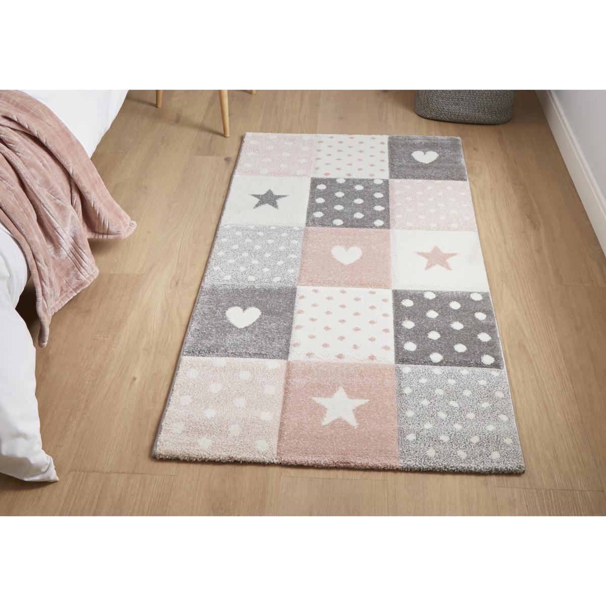 Bring the night sky into your little one’s bedroom with the super-soft and cosy Star Children’s Pink Rug. Why you’ll love it. Kids will love the star themed patterns. Modern block pattern design. Cosy, soft and gentle for little feet. The thick, hand-carved pile can cope with rough and tumble. Ideal for bright bedrooms and fun playrooms. What you need to know. Durable yet soft 100% Polypropylene. Choice of two sizes, and three colours and patterns. Machine-made in Turkey. Easy to sponge-clean and care for.