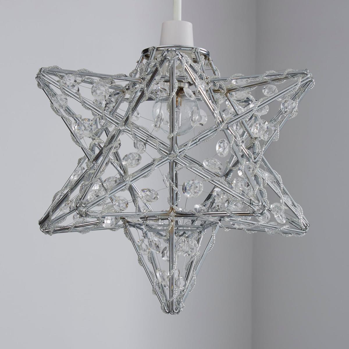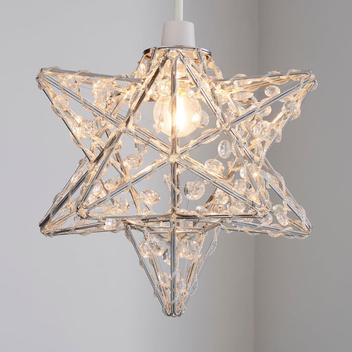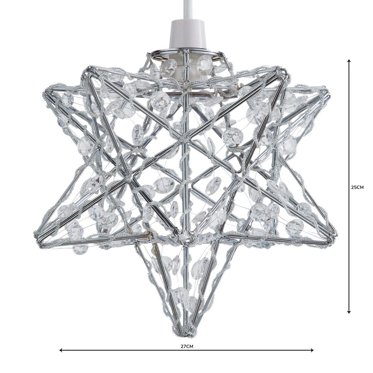 Designed in a star shape structure, this beautiful pendant features a chrome finish, topped with acrylic jewels and beads detailing. A perfect statement piece for any room.