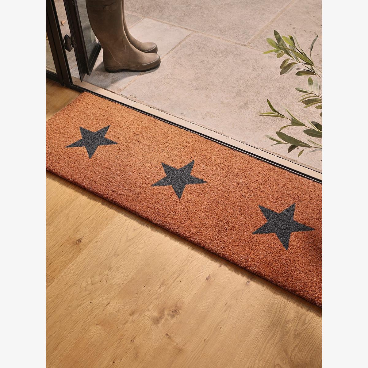 Made from hard-wearing coir with a durable rubber back to prevent slipping, our star doormat is perfect for protecting your floors and carpets from muddy feet.  Ideal for by the backdoor, front door or utility room, this double width doormat features a smart row of dark grey printed stars.