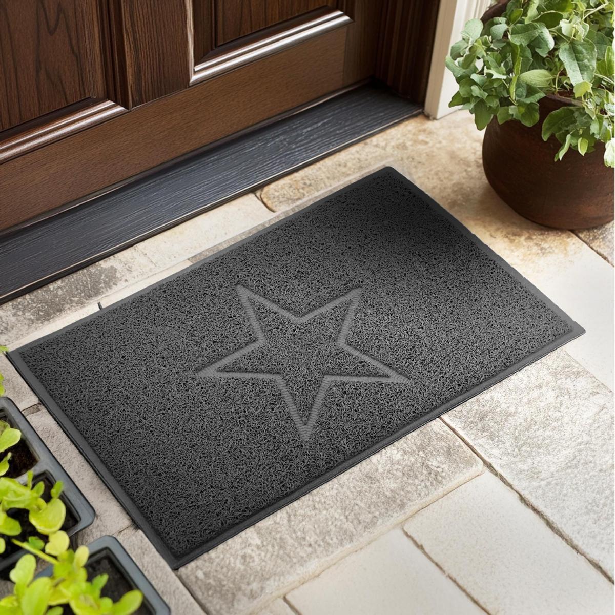 Star Embossed PVC Spaghetti Coil Doormat - Dark Grey / 75cm x 44cm