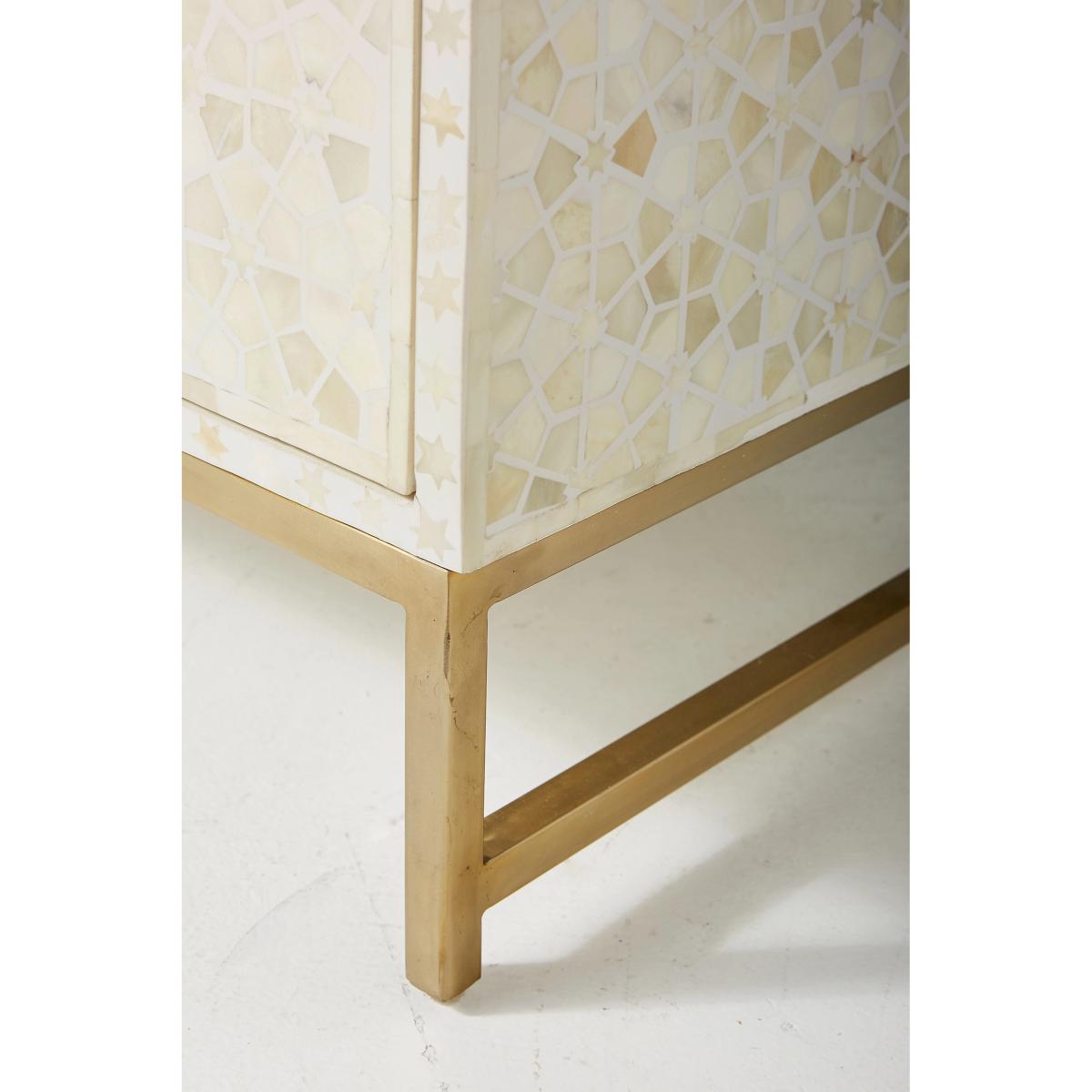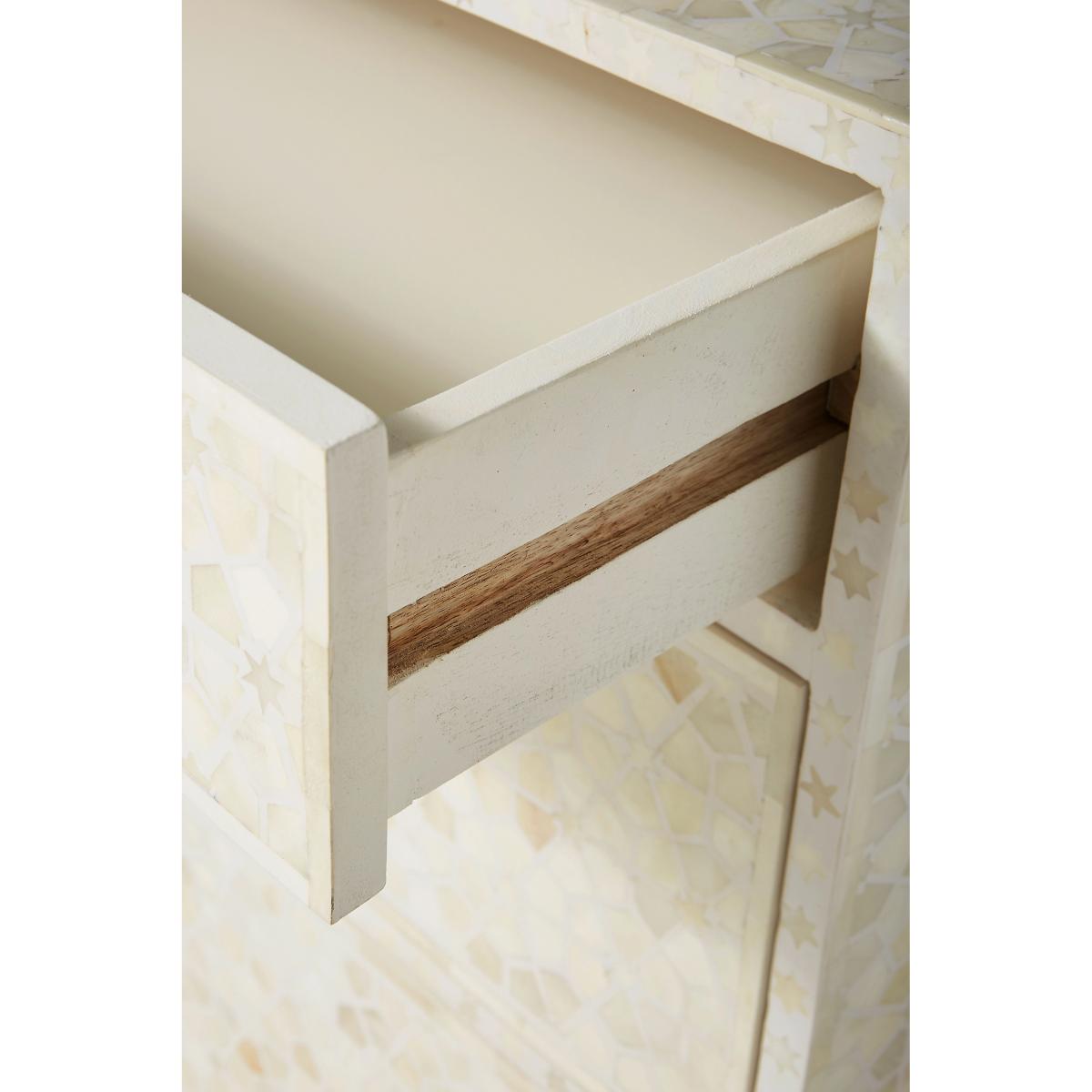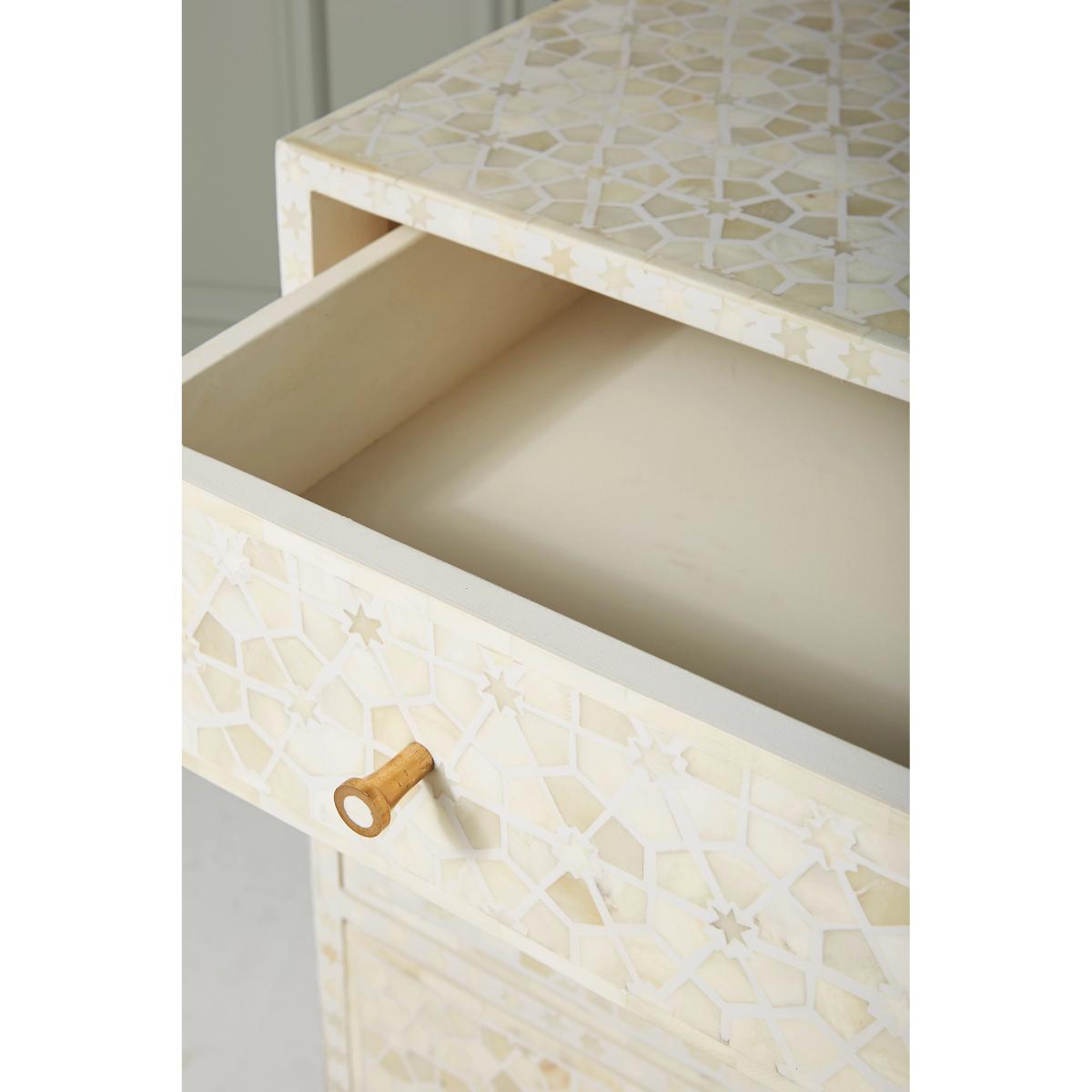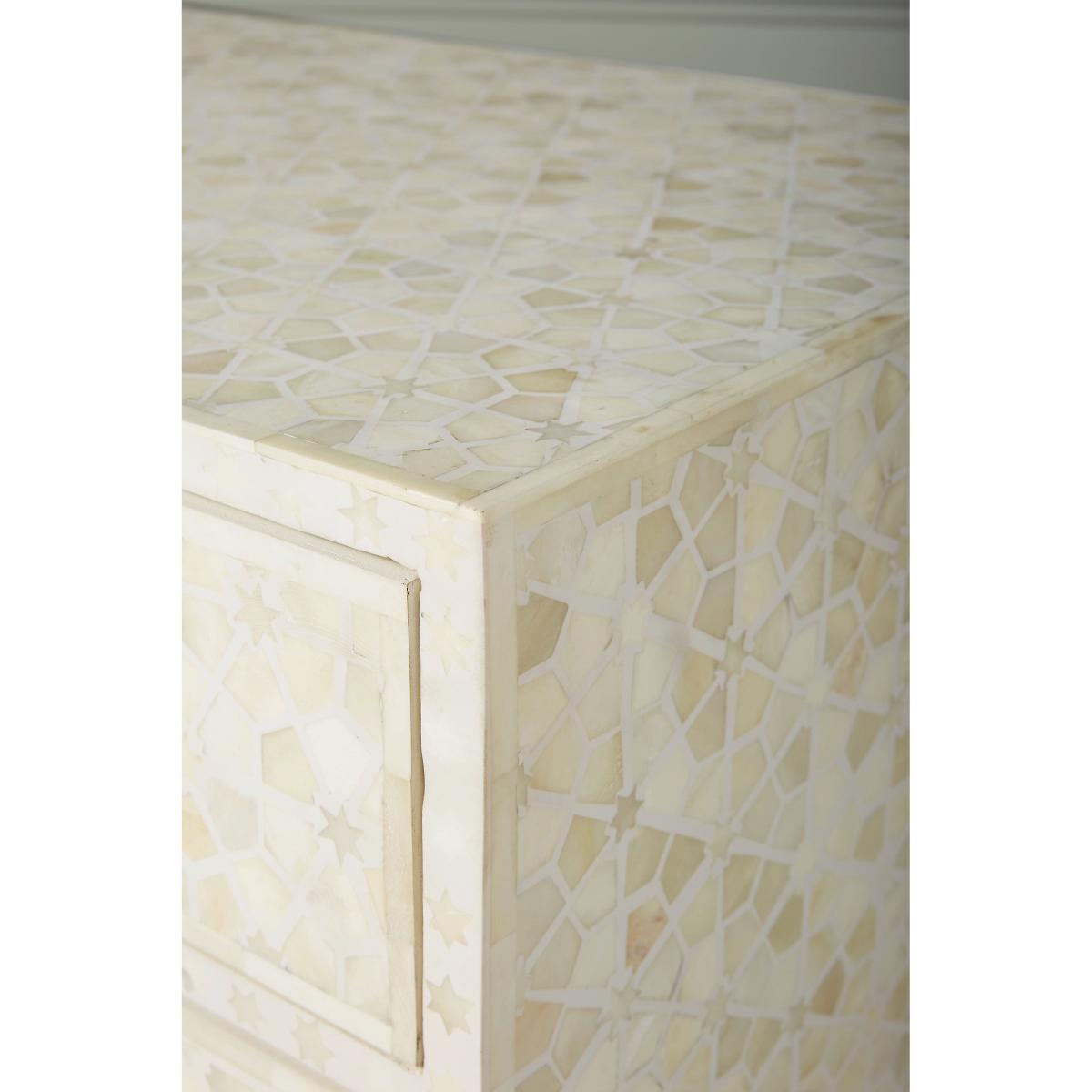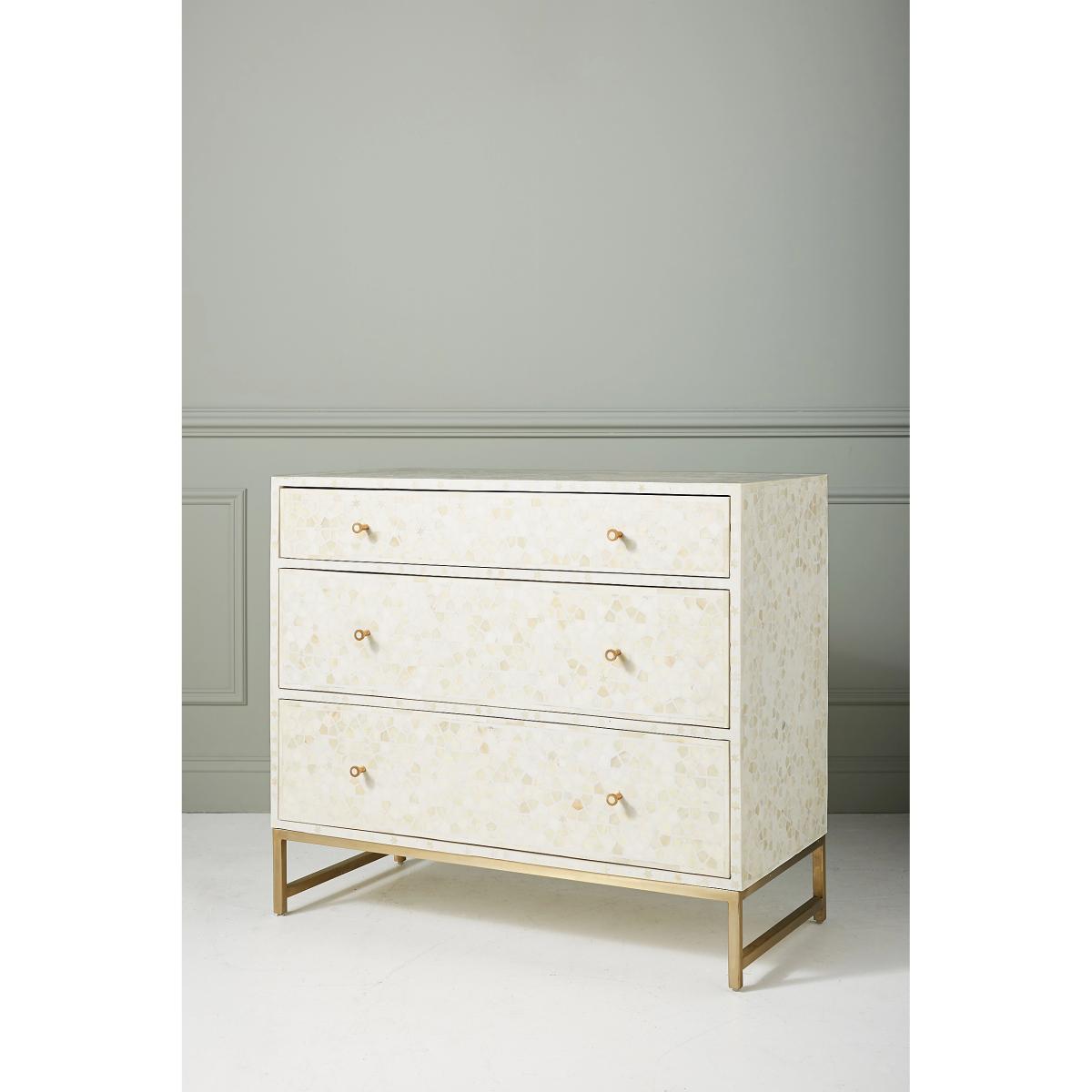 We love finding new ways for you to update your home, and this three-drawer dresser is one of the most luxurious ways of doing so. It's beautifully crafted by hand from engineered mango wood that's noted for it's durability and is polished with white resin, shiny brass hardware and bone inlay. * Exclusive to Anthropologie * Online only * Furniture pieces weighing over 30kg include delivery to your room of choice and packaging removal * Handcrafted bone inlay and resin three-drawer dresser with polished brass base and hardware * Due to the handcrafted nature of this item, expect slight variation in the appearance of each unique piece * Dusting is best done with a soft, lint-free cloth. * Wipe gently with a warm, damp cloth. * Dry immediately after cleaning. * If a liquid spill occurs, prompt cleaning is advised. * Do not use harsh solvents or chemicals. * Do not place hot items directly on surface. * Avoid sliding objects on furniture's surface; always lift and place objects. * Do not place over heat or air conditioning vents * This piece is intended for indoor use * No assembly required * Imported