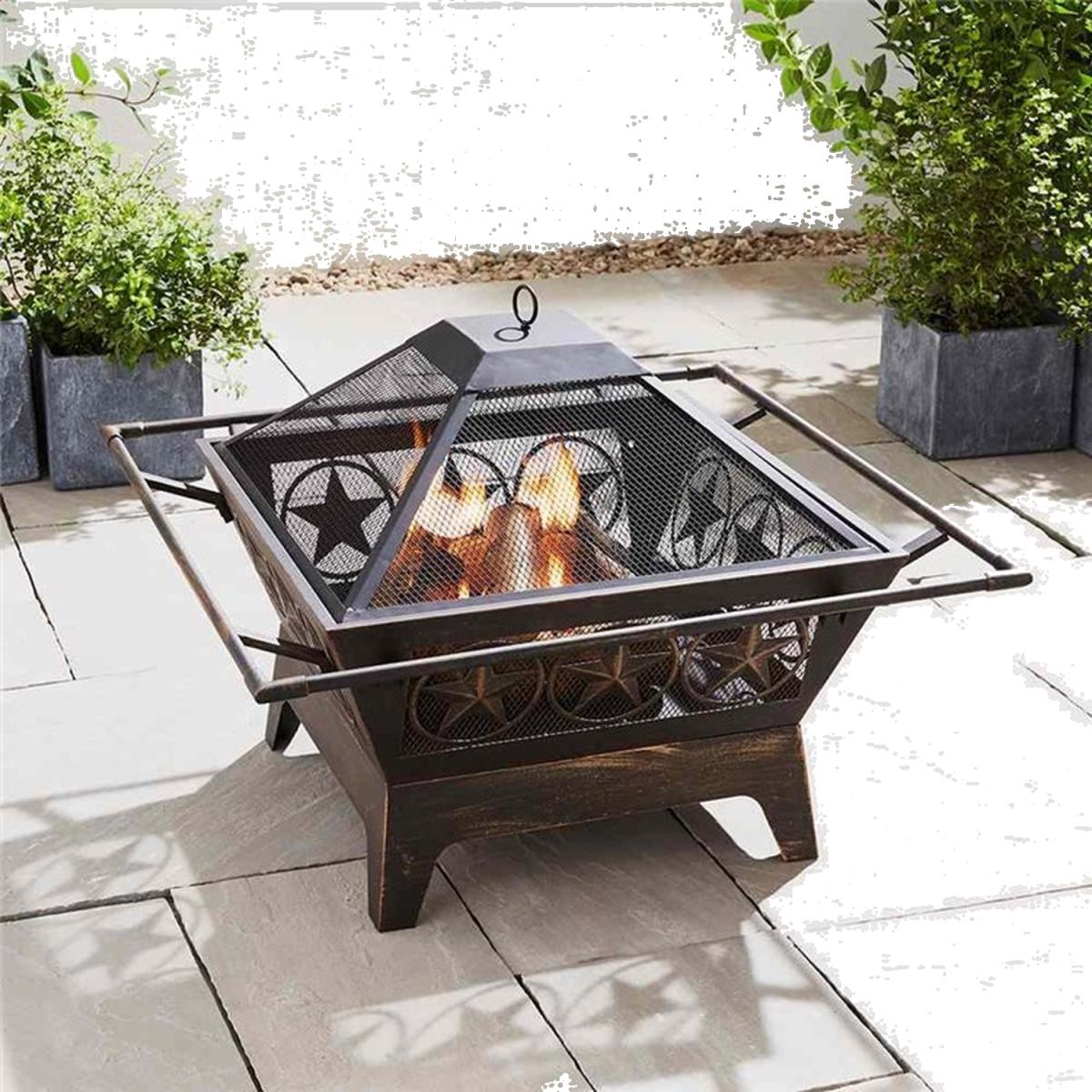 Star Outdoor Fireplace with Mesh Lid - Black