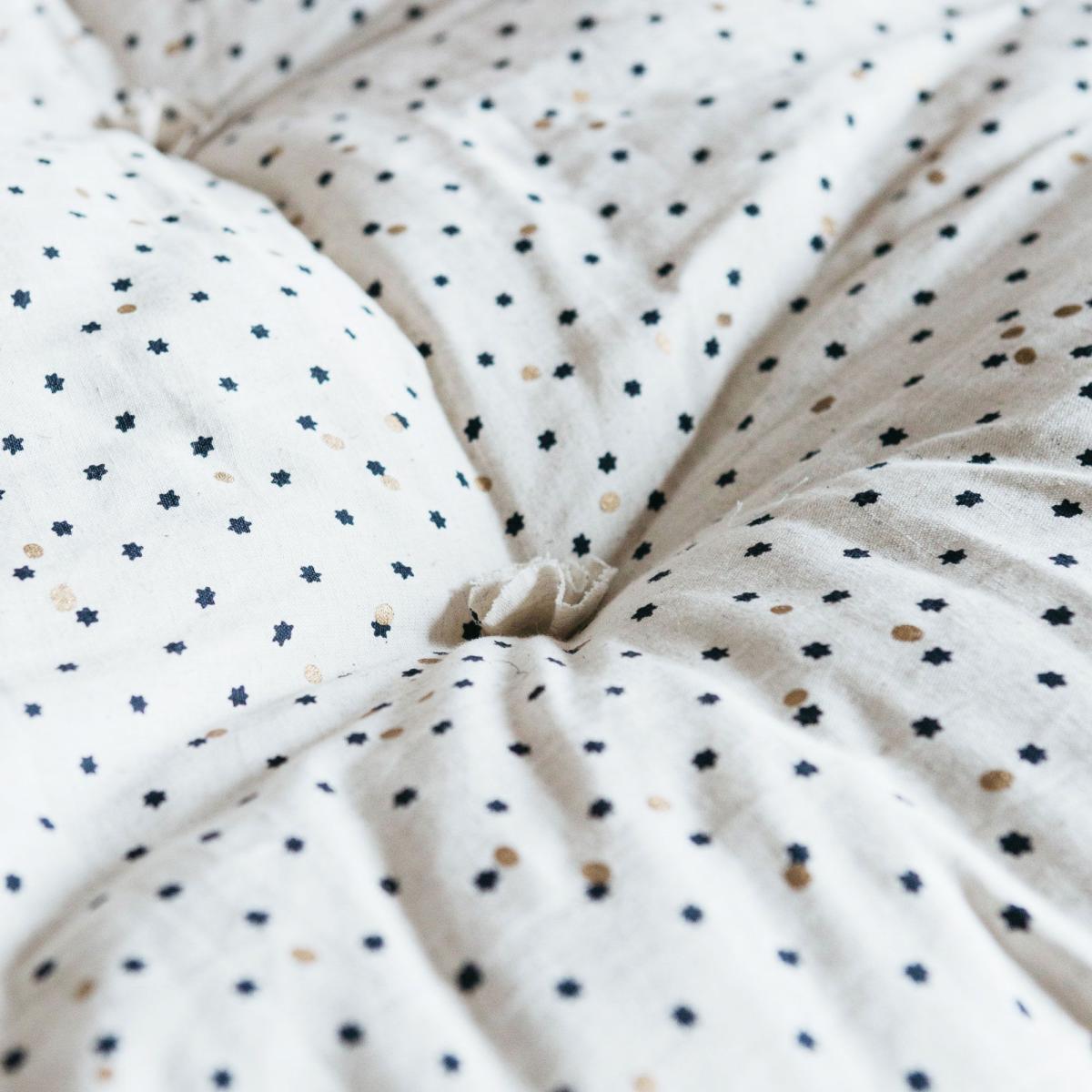 Suitable as a topper for a day bed or an occasional mattress, this versatile bed roll features a dainty, all-over star print. Bring out for sleepovers, then roll up inside the quilt bag to store or take on trips.