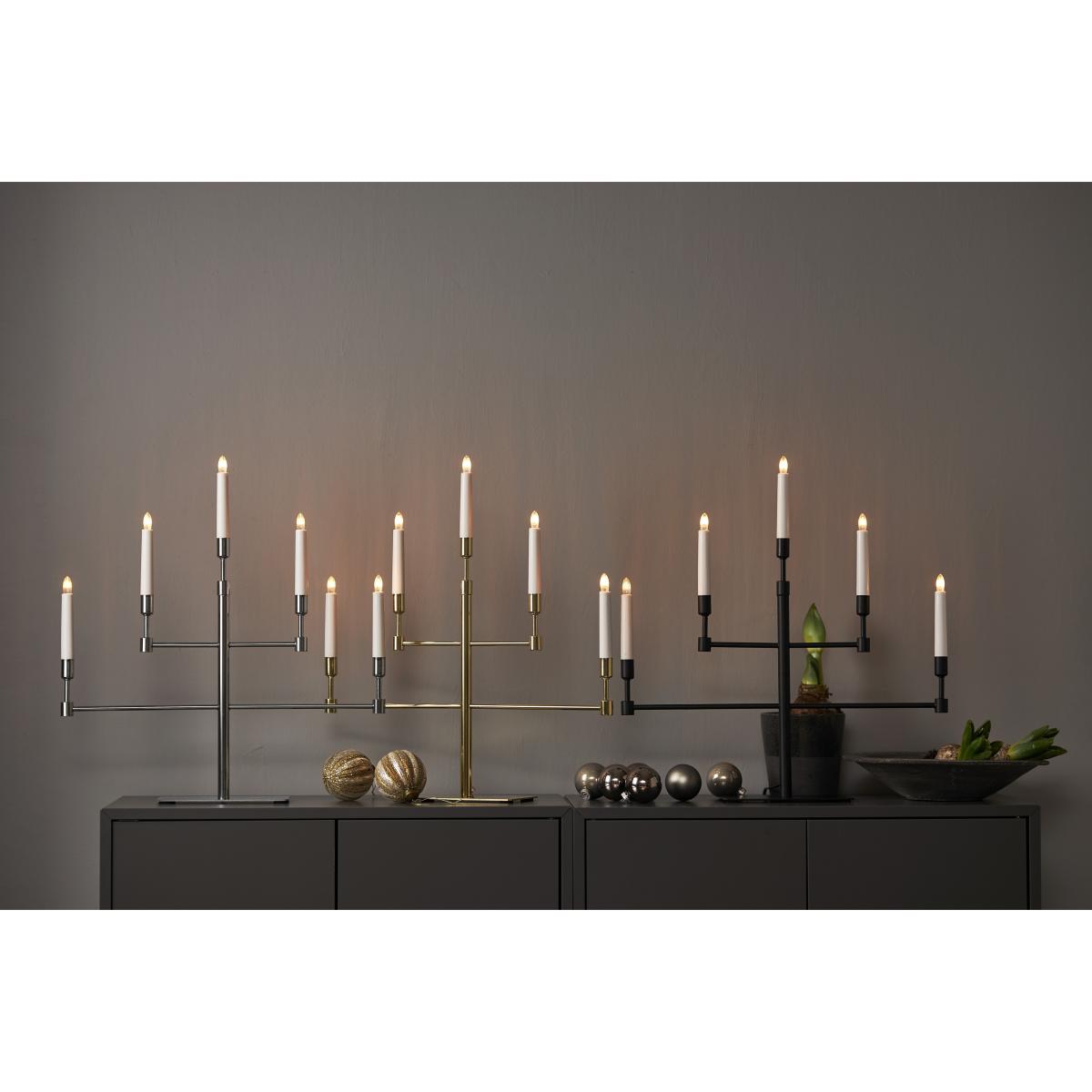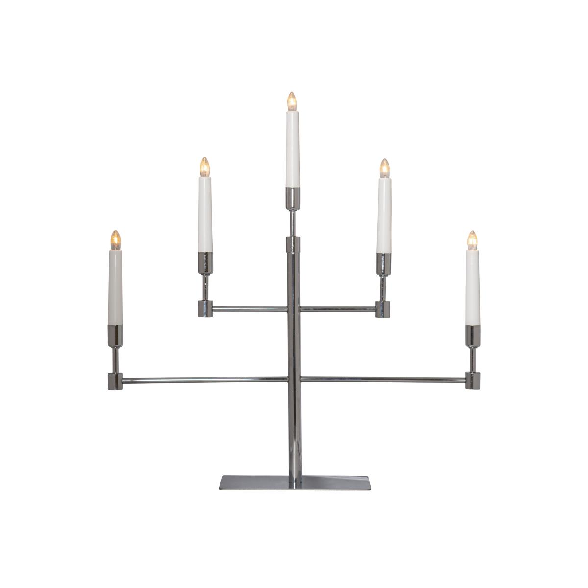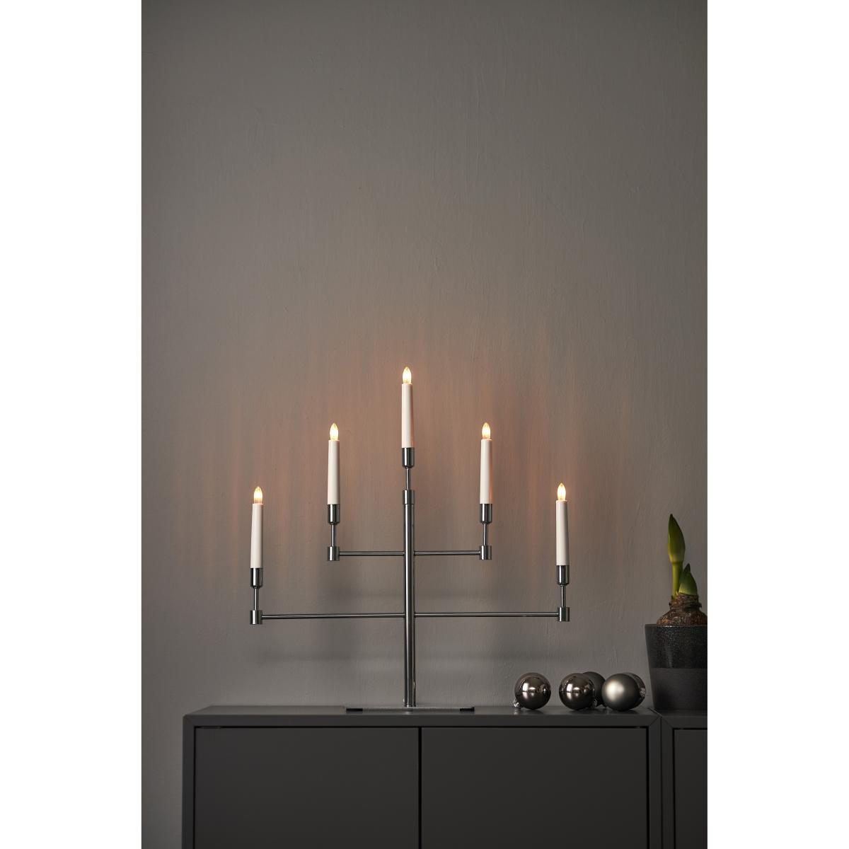 I love this candelabra for its sleek, contemporary look that adds a touch of elegance to both modern and minimalist interiors. The chrome finish gives it a reflective quality that works well in spaces with metallic accents or monochrome palettes, making it versatile for various colour schemes. It’s ideal for centrepieces on a dining table or as a stylish statement on a sideboard or console table, especially in well-lit rooms where its reflective surfaces can really shine. When styling, consider clustering it with other metallic accessories or pairing it with simple candleholders for a layered effect. To keep the look streamlined, opt for tall, slender candles that complement its elegant and understated design.