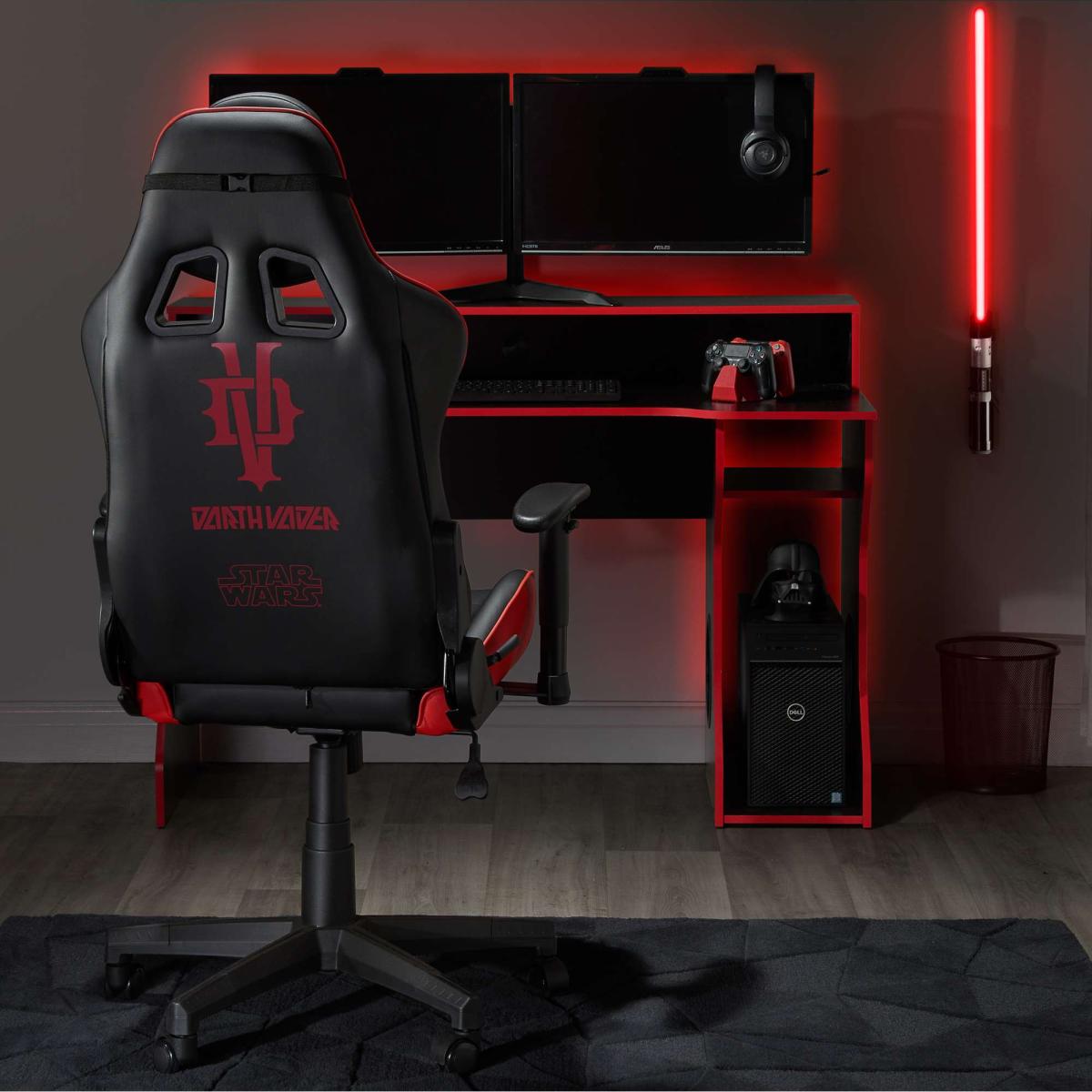 The Darth Vader gaming chair is a bold statement piece that works well in contemporary or themed gaming set-ups. I love how the striking red and black colour palette instantly elevates a gaming corner, adding personality without overwhelming the space. To style around it, consider keeping the surrounding furniture sleek and minimal to let the chair stand out - matte black or dark wood tones work beautifully. Practical tips include balancing the vibrant colour with neutral accessories and ensuring good ergonomics for long gaming sessions. It's perfect for creating an edgy, dedicated gaming zone or even a fun contrasting addition to a modern home office.
