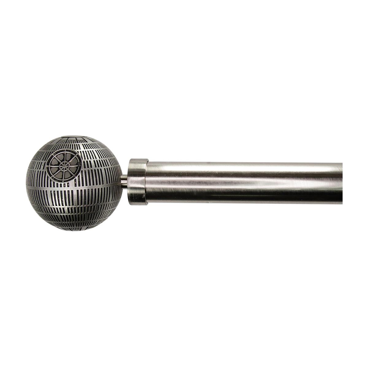 * Extendable pole with a choice of lengths * Statement design Finial * 25/28mm Diameter * Brackets, fixings and instructions included Embrace the dark side with the Star Wars Death Star extendable pole. Perfect for fans of the franchise, this pole features a Death Star finial and adjusts from 120-210cm. Includes fittings for a seamless installation. Please note: * The pole length stated does not include the finials. Please allow up to an additional 3cm to the pole length to accommodate the finials. * Fixed curtain poles in lengths of 240cm and above come in two lengths with a joiner.