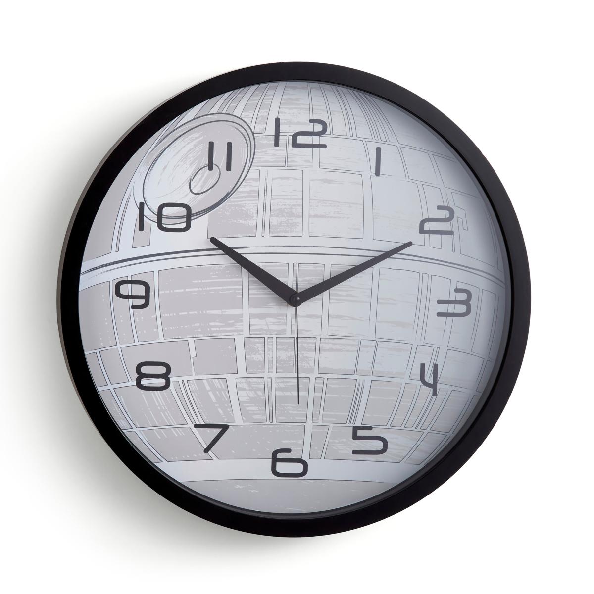 * Arabic numeral figures* Classic black styled hands * Silent hand movement* Star Wars Death Star design Blast off to a galaxy far, far away with our Star Wars Death Star Clock! This isn't just a time-piece; it's a cosmic statement piece that any fan of the Force would love to have. Featuring bold Arabic numeral figures and classic styled hands on a sleek black backdrop, this clock is a timeless blend of style and Star Wars magic. The Death Star design is bound to ignite your inner Jedi or Sith Lord, making your space feel like it's part of the Star Wars saga. And here's the kicker – it comes with silent movement, so you won't have any unwanted droid-like noises ticking away the seconds. It's the perfect addition to any room, whether you're a devoted Star Wars enthusiast or just a lover of unique, out-of-this-world decor. Please note: Not suitable for bathrooms.