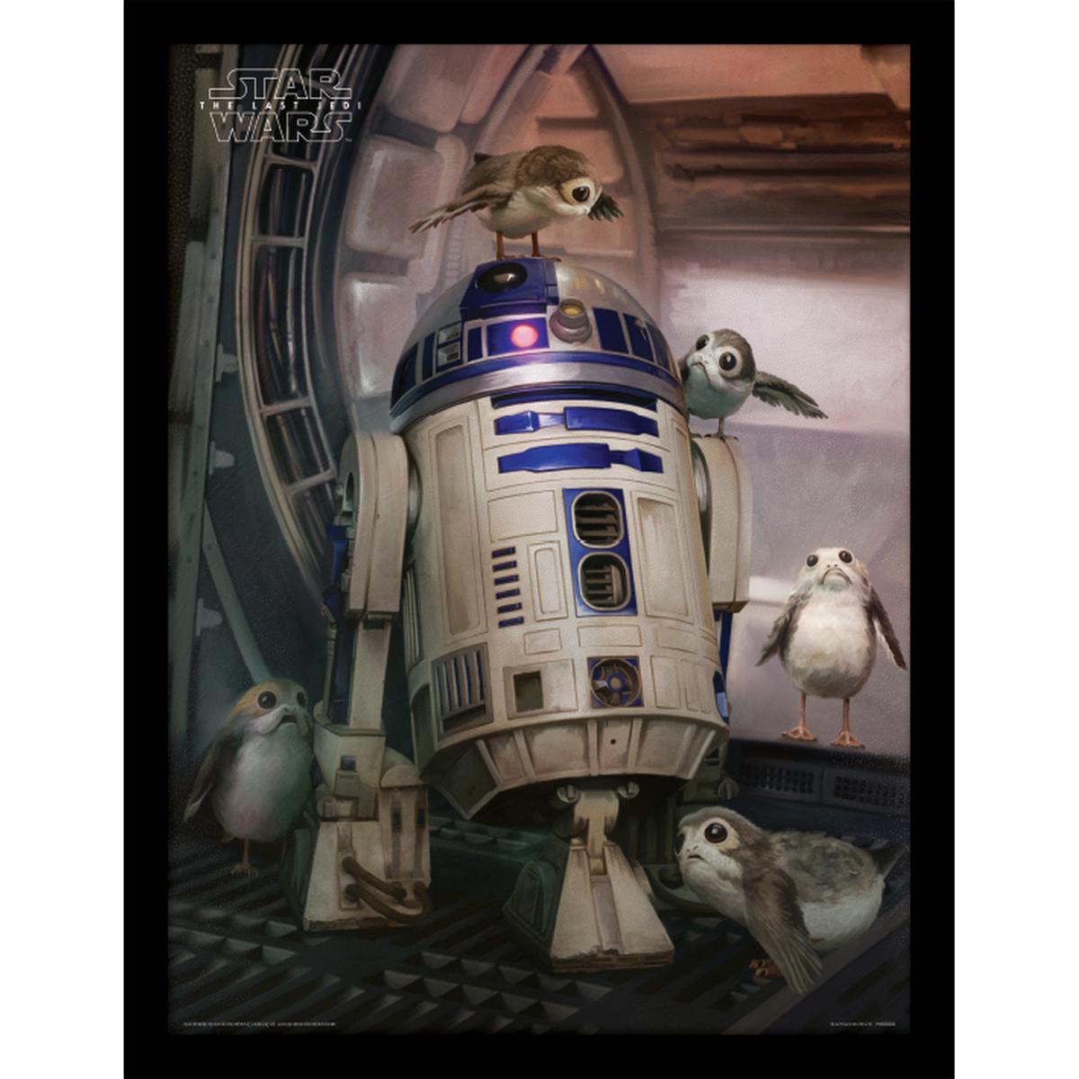 Star Wars The Last Jedi (R2D2 and Porgs) Framed Print