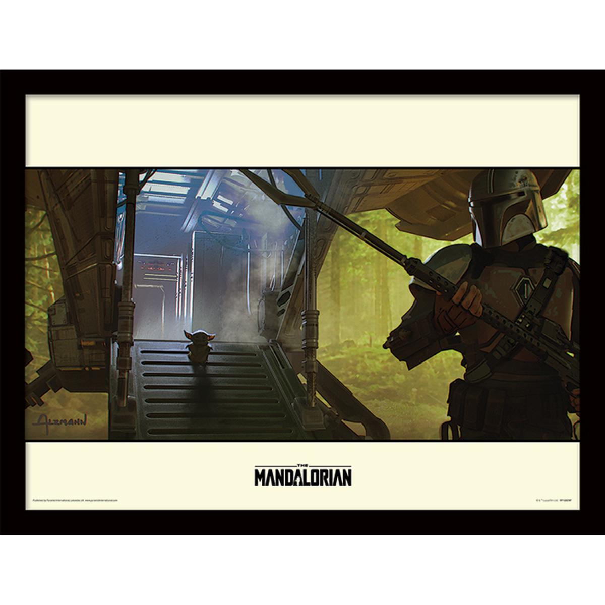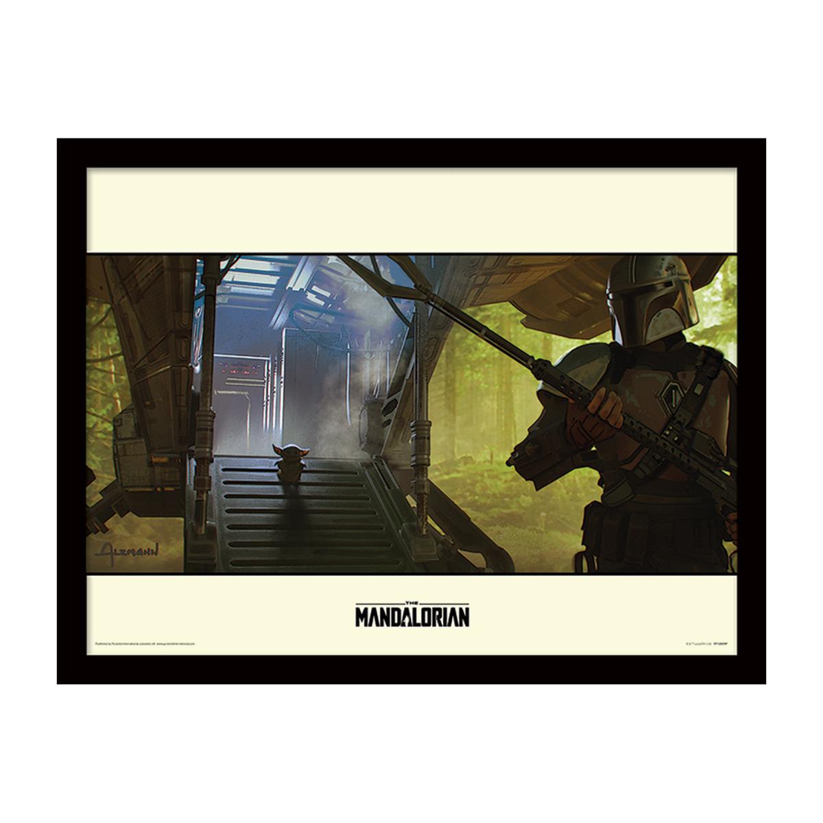 30x40cm Framed Print, in elegant black MDF frame with hanging fixings on the back for displaying this great Star Wars: The Mandalorian print anywhere around your home.