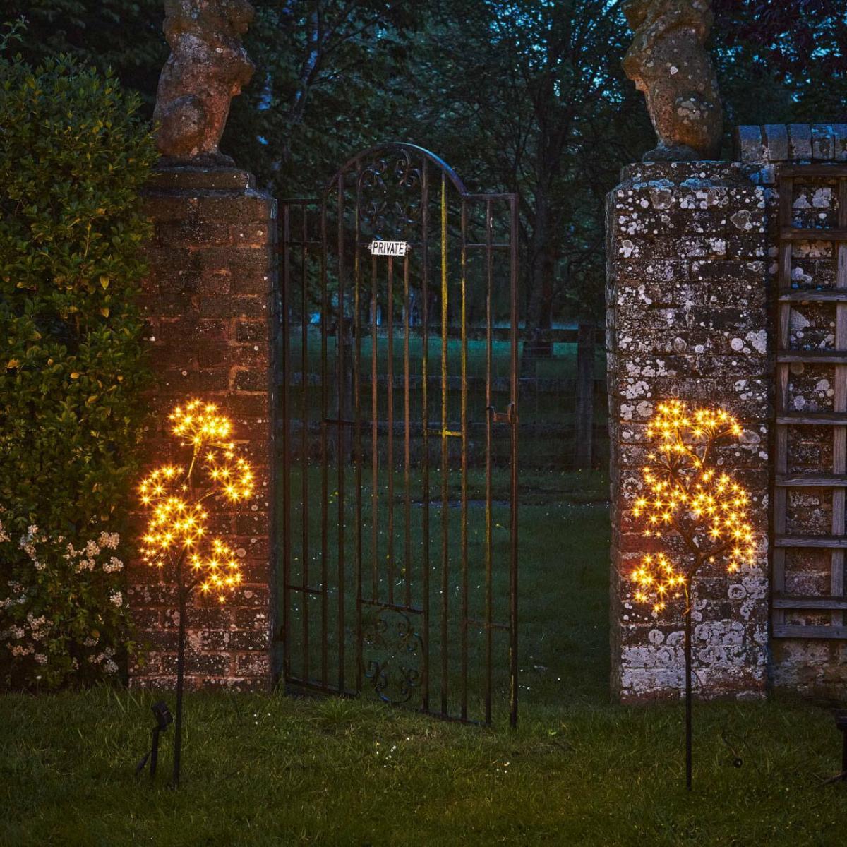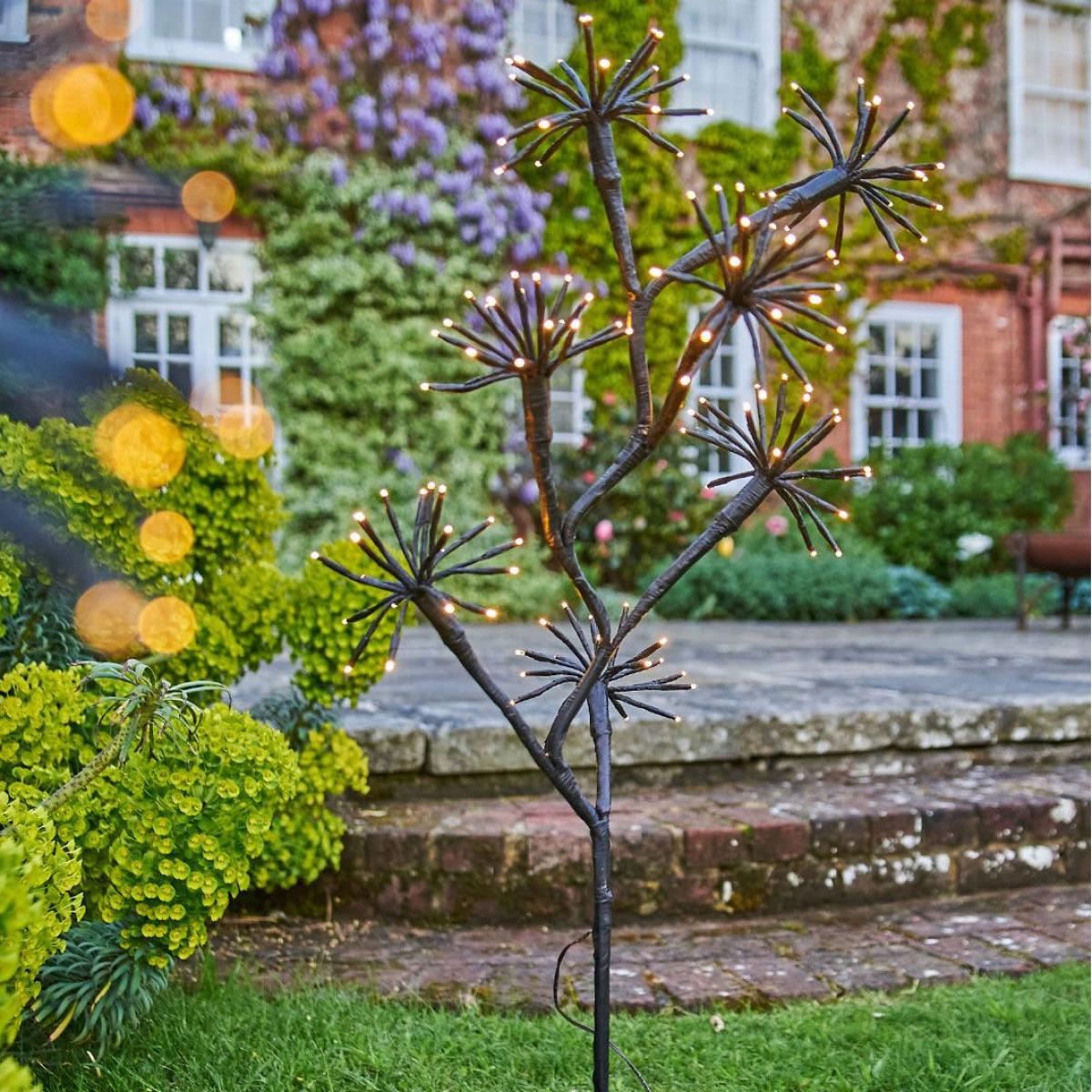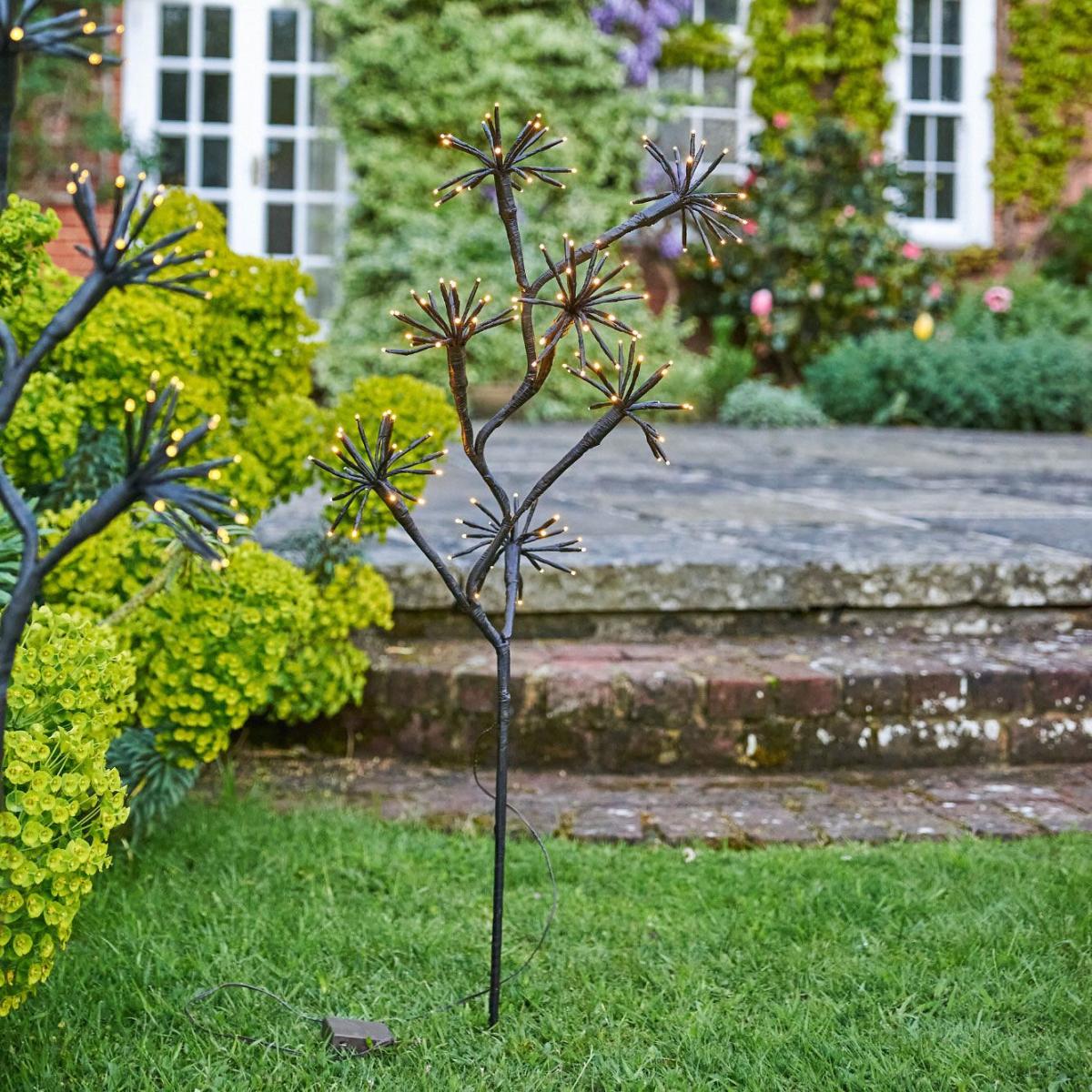 I love this starburst branch light for its striking, modern presence and versatility in outdoor settings. It works well in both contemporary and rustic exteriors, adding a warm and inviting glow to gardens, pathways, or outdoor seating areas. Practical styling tips include placing a pair of these lights symmetrically to frame a gate or entrance for a chic, welcoming feel, or scattering them across a patio for whimsical ambience. They also look great mixed with potted plants or outdoor furniture, providing a subtle yet impactful lighting feature that elevates the overall outdoor space.
