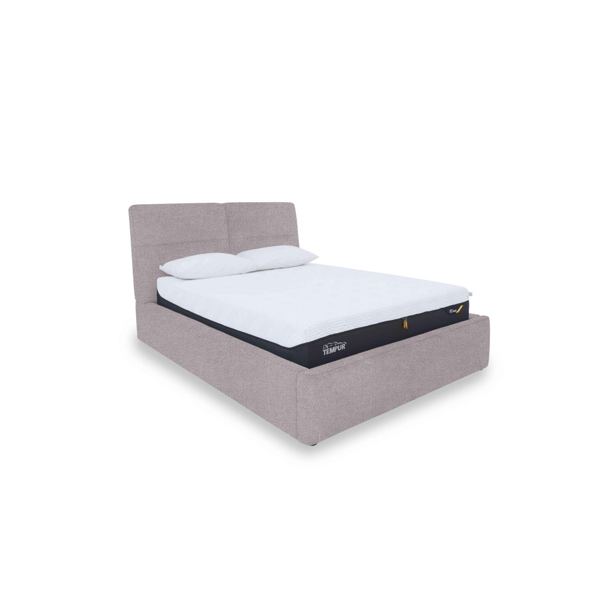 Well-crafted and thoughtfully designed, our Stark range makes it easy to transform your bedroom in more ways than one. This collection of contemporary ottoman bed frames and blanket boxes showcases beautifully cushioned curves and, at the same, significantly increases your bedroom’s storage capacity ensuring that it stays stylishly clutter-free and is always the haven of calm relaxation that you want it to be. Ottoman bed frames are available with your choice of electric or manual lifting mechanism and in both 100% leather and beautiful fabric. The Stark range is exclusively available at Furniture Village. This striking upholstered bed frame with stylish cushioned headboard brings style and easy-access ottoman storage to your bedroom. In a huge choice of fabric colours. Why you'll love it Inviting contemporary bedroom style – with storage. The ultimate cushioned headboard and an all-round curvaceous profile. Upholstered in high-quality luxury fabric. Exceptionally wide choice of fashionable colours. Robust construction with a sturdy slatted wood base for optimal mattress support. Ottoman’s sprung mechanism with locking feature makes opening and closing safe and easy. Storage compartment is the same footprint as the bed frame for maximum capacity. It’s the perfect storage place for lightweight items like duvets, pillows and clothing. Also offered in 100% leather upholstery. Available in king and super king bed sizes. A Furniture Village exclusive. This fabric manual ottoman bed frame is part of our Stark range. What you need to know Mattress sold separately. Maximum mattress weight is 80 kg for both king and super king bed frames. Please keep hands clear of the mechanism when opening and closing the ottoman. Do not sit on the foot end of this ottoman bed frame when opening. Clean regularly using a soft brush or vacuum with the curtain attachment. Deal with any spills promptly. Professional cleaning advised for oil- and grease-based stains. Some fabrics can show wear on areas of more use or in direct sunlight.
