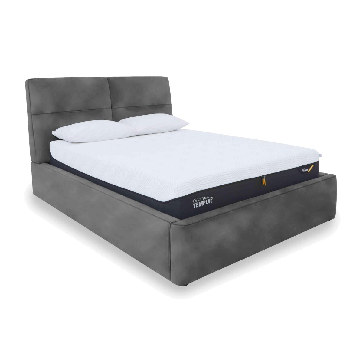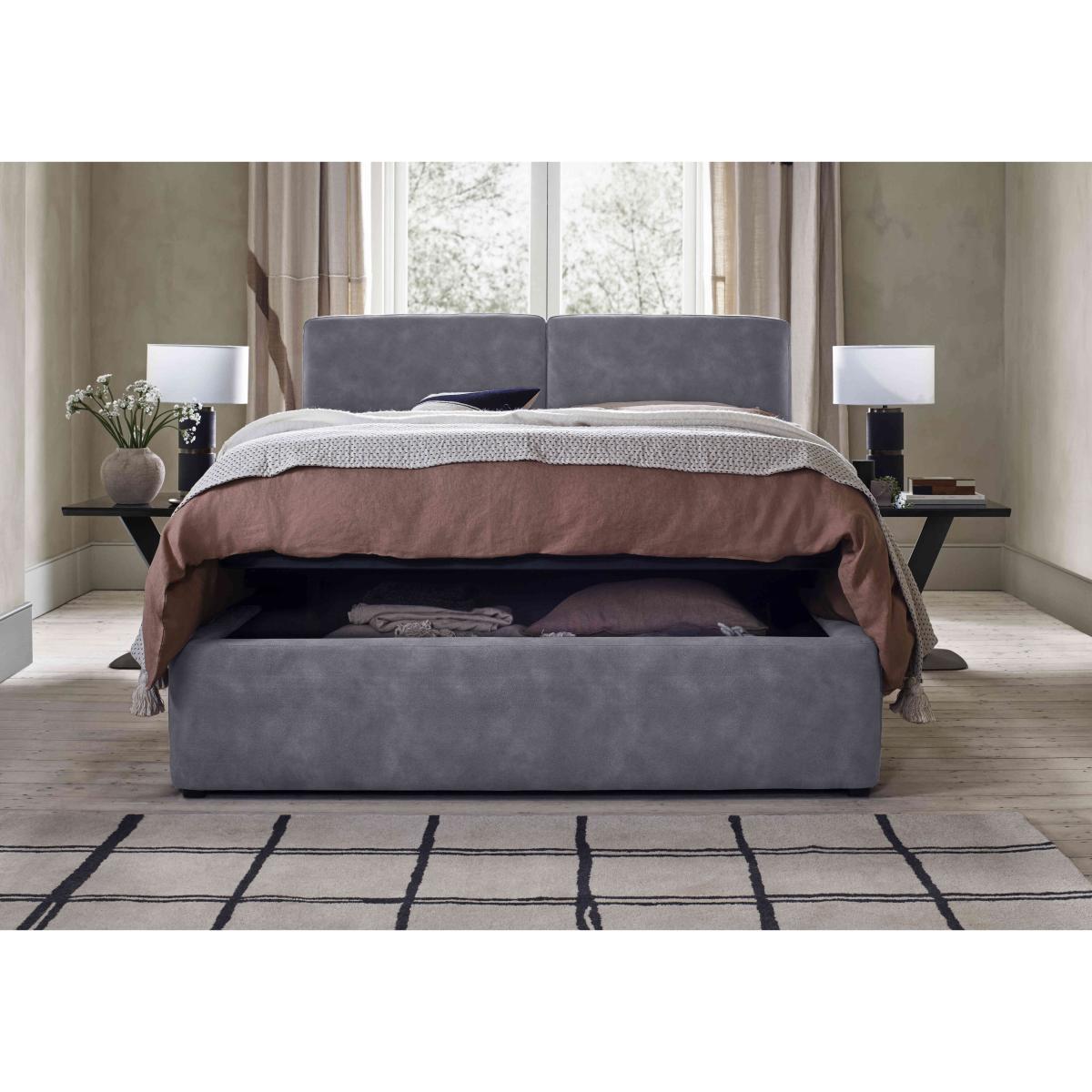 Well-crafted and thoughtfully designed, our Stark range makes it easy to transform your bedroom in more ways than one. This collection of contemporary ottoman bed frames and blanket boxes showcases beautifully cushioned curves and, at the same, significantly increases your bedroom’s storage capacity ensuring that it stays stylishly clutter-free and is always the haven of calm relaxation that you want it to be. Ottoman bed frames are available with your choice of electric or manual lifting mechanism and in both 100% leather and beautiful fabric. The Stark range is exclusively available at Furniture Village. This striking upholstered bed frame with stylish cushioned headboard brings style and easy-access ottoman storage to your bedroom. In a huge choice of fabric colours. Why you'll love it Inviting contemporary bedroom style – with storage. The ultimate cushioned headboard and an all-round curvaceous profile. Upholstered in high-quality luxury fabric. Exceptionally wide choice of fashionable colours. Robust construction with a sturdy slatted wood base for optimal mattress support. Ottoman’s sprung mechanism with locking feature makes opening and closing safe and easy. Storage compartment is the same footprint as the bed frame for maximum capacity. It’s the perfect storage place for lightweight items like duvets, pillows and clothing. Also offered in 100% leather upholstery. Available in king and super king bed sizes. A Furniture Village exclusive. This fabric manual ottoman bed frame is part of our Stark range. What you need to know Mattress sold separately. Maximum mattress weight is 80 kg for both king and super king bed frames. Please keep hands clear of the mechanism when opening and closing the ottoman. Do not sit on the foot end of this ottoman bed frame when opening. Clean regularly using a soft brush or vacuum with the curtain attachment. Deal with any spills promptly. Professional cleaning advised for oil- and grease-based stains. Some fabrics can show wear on areas of more use or in direct sunlight.
