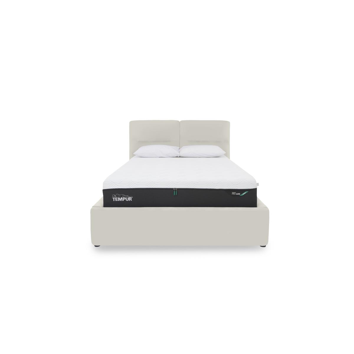 Well-crafted and thoughtfully designed, our Stark range makes it easy to transform your bedroom in more ways than one. This collection of contemporary ottoman bed frames and blanket boxes showcases beautifully cushioned curves and, at the same, significantly increases your bedroom’s storage capacity ensuring that it stays stylishly clutter-free and is always the haven of calm relaxation that you want it to be. Ottoman bed frames are available with your choice of electric or manual lifting mechanism and in both 100% leather and beautiful fabric. The Stark range is exclusively available at Furniture Village. Everything about this ottoman bed frame says luxury – the beautifully soft 100% leather upholstery, the striking and well-cushioned headboard design, and the smooth electric ottoman mechanism. Why you'll love it Inviting contemporary bedroom style – with storage. The ultimate cushioned headboard and an all-round curvaceous profile. Electric mechanism makes opening and closing this ottoman frame bed quick and easy. Touch-button control panel includes a safety locking feature and even a USB port. Upholstered in 100% leather – so soft, so luxurious. Exceptionally wide choice of fashionable leather colours. Robust construction with a sturdy slatted wood base for optimal mattress support. Storage compartment is the same footprint as the bed frame for maximum capacity. It’s the perfect storage place for lightweight items like duvets, pillows and clothing. Available in king and super king bed sizes. A Furniture Village exclusive. This leather electric ottoman bed frame is part of our Stark range. What you need to know Mattress sold separately. Maximum mattress weight is 80 kg for both king and super king bed frames. Please keep hands clear of the mechanism when opening and closing the ottoman. Do not sit on the foot end of this ottoman bed frame when opening. Leather has unique marks and characteristics with variation in colour and texture. Leather softens with use. Deal with any spills promptly. Professional cleaning advised for oil- and grease-based stains.