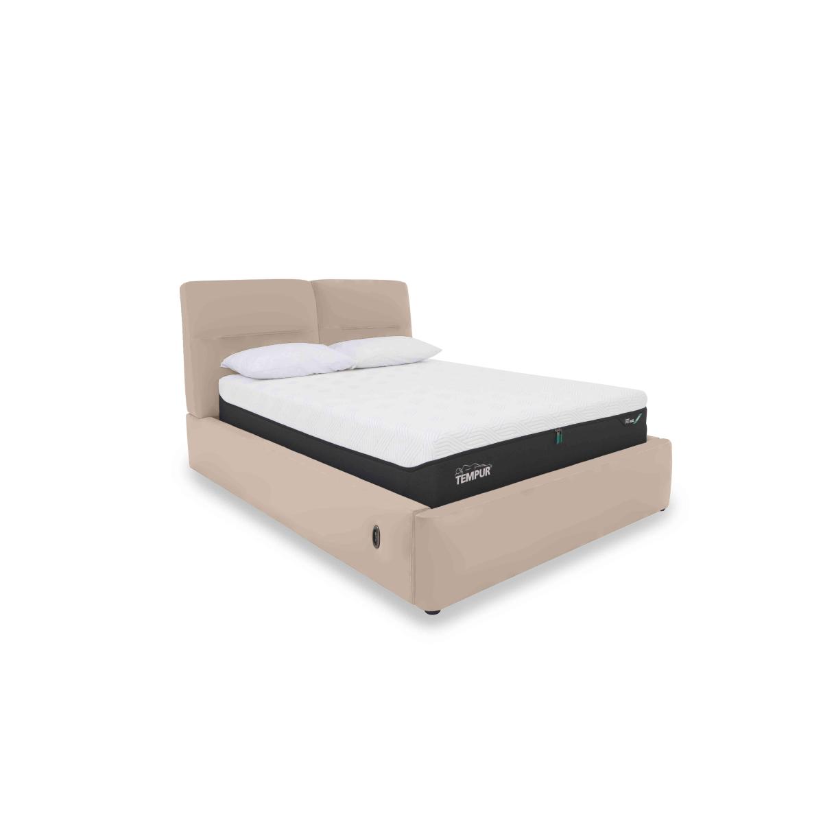 Well-crafted and thoughtfully designed, our Stark range makes it easy to transform your bedroom in more ways than one. This collection of contemporary ottoman bed frames and blanket boxes showcases beautifully cushioned curves and, at the same, significantly increases your bedroom’s storage capacity ensuring that it stays stylishly clutter-free and is always the haven of calm relaxation that you want it to be. Ottoman bed frames are available with your choice of electric or manual lifting mechanism and in both 100% leather and beautiful fabric. The Stark range is exclusively available at Furniture Village. Everything about this ottoman bed frame says luxury – the beautifully soft 100% leather upholstery, the striking and well-cushioned headboard design, and the smooth electric ottoman mechanism. Why you'll love it Inviting contemporary bedroom style – with storage. The ultimate cushioned headboard and an all-round curvaceous profile. Electric mechanism makes opening and closing this ottoman frame bed quick and easy. Touch-button control panel includes a safety locking feature and even a USB port. Upholstered in 100% leather – so soft, so luxurious. Exceptionally wide choice of fashionable leather colours. Robust construction with a sturdy slatted wood base for optimal mattress support. Storage compartment is the same footprint as the bed frame for maximum capacity. It’s the perfect storage place for lightweight items like duvets, pillows and clothing. Available in king and super king bed sizes. A Furniture Village exclusive. This leather electric ottoman bed frame is part of our Stark range. What you need to know Mattress sold separately. Maximum mattress weight is 80 kg for both king and super king bed frames. Please keep hands clear of the mechanism when opening and closing the ottoman. Do not sit on the foot end of this ottoman bed frame when opening. Leather has unique marks and characteristics with variation in colour and texture. Leather softens with use. Deal with any spills promptly. Professional cleaning advised for oil- and grease-based stains.