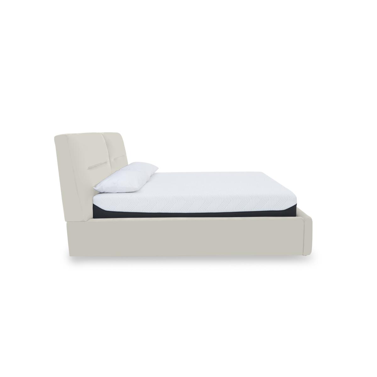 Well-crafted and thoughtfully designed, our Stark range makes it easy to transform your bedroom in more ways than one. This collection of contemporary ottoman bed frames and blanket boxes showcases beautifully cushioned curves and, at the same, significantly increases your bedroom’s storage capacity ensuring that it stays stylishly clutter-free and is always the haven of calm relaxation that you want it to be. Ottoman bed frames are available with your choice of electric or manual lifting mechanism and in both 100% leather and beautiful fabric. The Stark range is exclusively available at Furniture Village. This beautiful ottoman bed frame brings style, storage and so much more to your bedroom. It’s upholstered in soft and luxurious 100% leather in a wide choice of contemporary colours. Why you'll love it Inviting contemporary bedroom style – with storage. The ultimate cushioned headboard and an all-round curvaceous profile. Upholstered in 100% leather – so soft, so luxurious. Exceptionally wide choice of fashionable leather colours. Robust construction with a sturdy slatted wood base for optimal mattress support. Ottoman’s sprung mechanism with locking feature makes opening and closing safe and easy. Storage compartment is the same footprint as the bed frame for maximum capacity. It’s the perfect storage place for lightweight items like duvets, pillows and clothing. Available in king and super king bed sizes. A Furniture Village exclusive. This leather manual ottoman bed frame is part of our Stark range. What you need to know Mattress sold separately. Maximum mattress weight is 80 kg for both king and super king bed frames. Please keep hands clear of the mechanism when opening and closing the ottoman. Do not sit on the foot end of this ottoman bed frame when opening. Leather has unique marks and characteristics with variation in colour and texture. Leather softens with use. Deal with any spills promptly. Professional cleaning advised for oil- and grease-based stains.