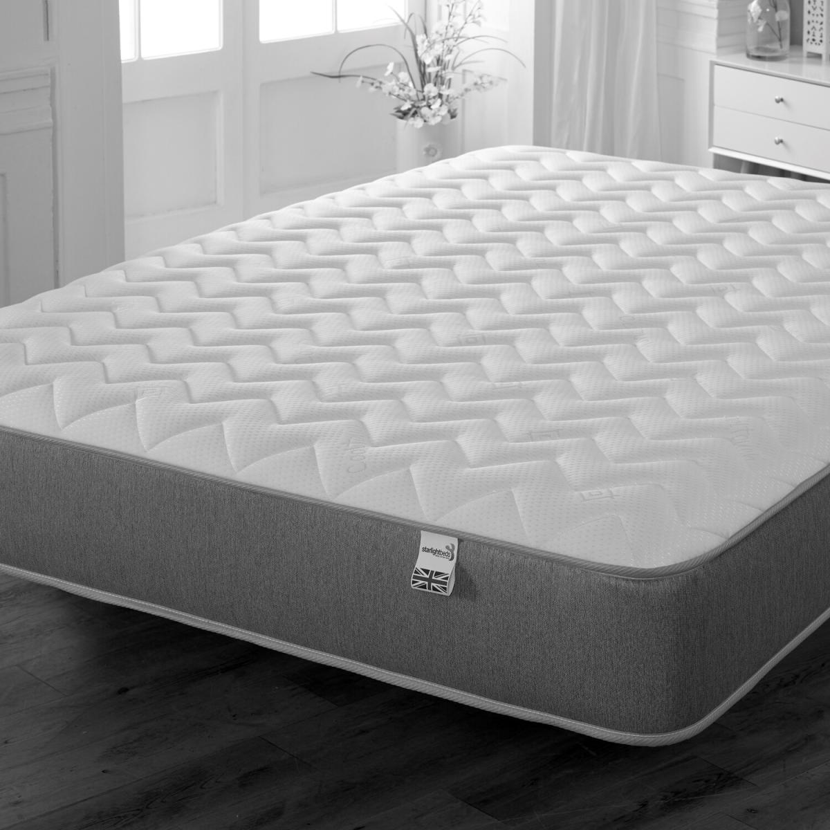 This hybrid mattress combines both memory foam and a traditional 13.5 gauge open coil spring unit, helping reduce pressure points for increased comfort. Covered in a cool touch material for a softer sleeping surface and stylishly finished with a grey border. With innovative technology, we are now able to source materials to help protect the environment. Memory foam adapts and conforms to the body and evenly distributes the weight across the surface. The main benefit of memory foam is to provide support and comfort by contouring the body which can help reduce pressure points and promote better spinal alignment. The Coil spring provides good even support across the entire surface. This component has been used for generations due to its longevity, providing a longer durability life. Combined with memory foam for a great night's sleep.
