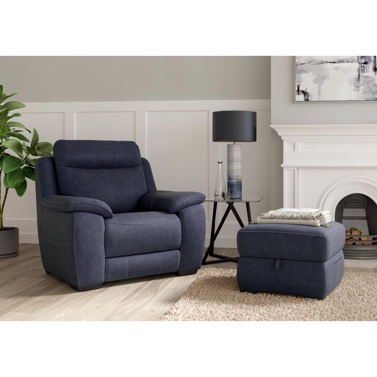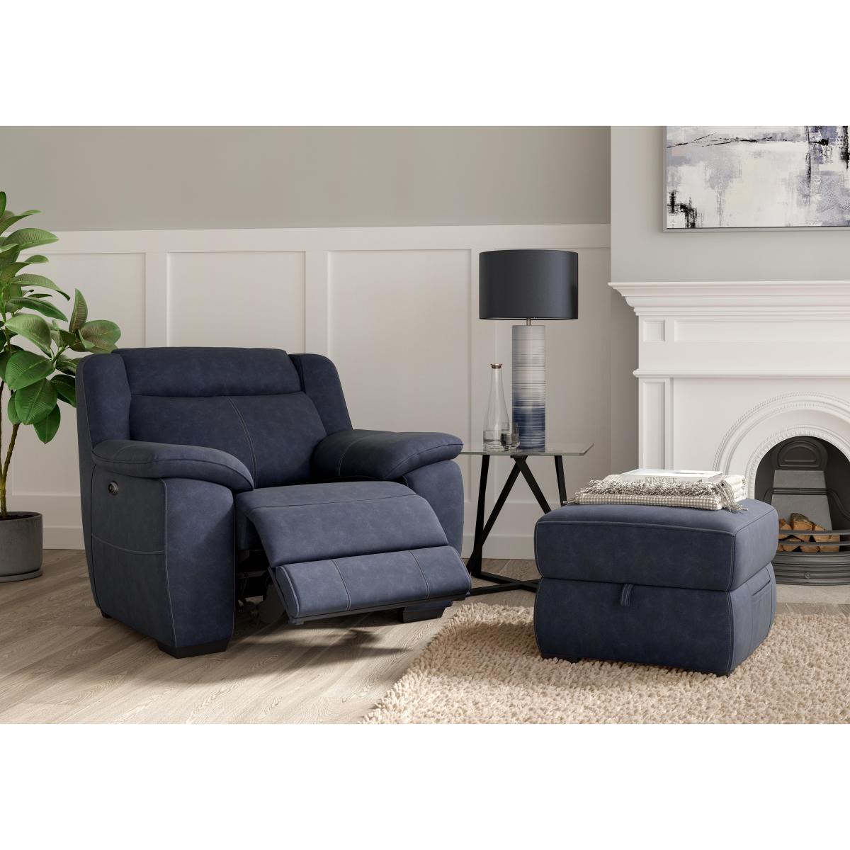 This curvaceous cushioned armchair with sprung seat and high back even has a USB charging port for the ultimate in relaxation. Why you'll love it Beautiful power recliner armchair makes everything better. Modern curves, superb comfort. Really relax with a power recliner and handy USB charging. Enjoy comfort and support thanks to the sprung seat, wide armrests and high back. Beautifully upholstered in a huge choice of sophisticated fabrics. Feet have a dark walnut finish. Also available with a manual recliner and without a recliner. Exclusive to Furniture Village. This fabric power recliner armchair is part of the Starlight Express range. What you need to know Medium comfort level. Seat suspension: no- sag spring. Seat cushioning: foam topped with fibre. Back support: no- sag spring. Back cushioning: luxury fibre. To maintain cushion fullness, be sure to plump head, lumbar and arm areas daily. USB charging is only available with the power recliner version of this armchair. Please allow time for new recliners to ease. Minor gaps are necessary to ensure ease of recliner motion and may be exaggerated depending on floor type. Some fabrics can show wear on areas of more use or in direct sunlight. Clean regularly using a soft brush or vacuum with the curtain attachment. Deal with any spills promptly. Professional cleaning advised for oil- and grease- based stains. Please read our upholstery care guide for more advice.