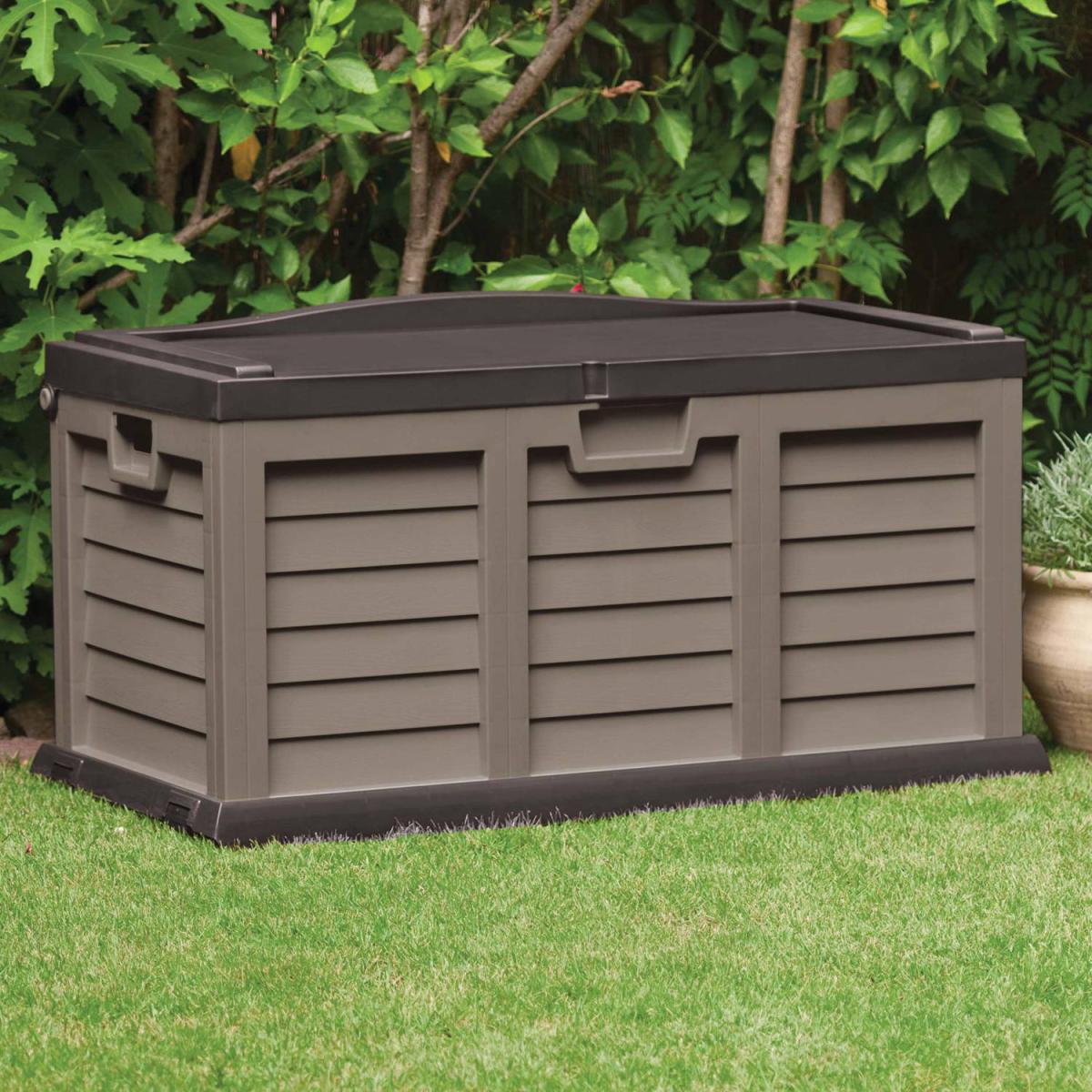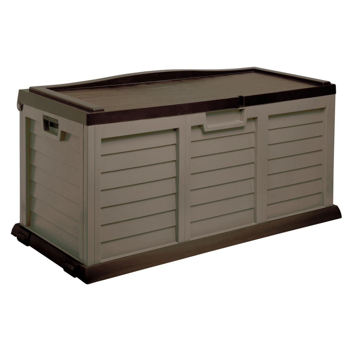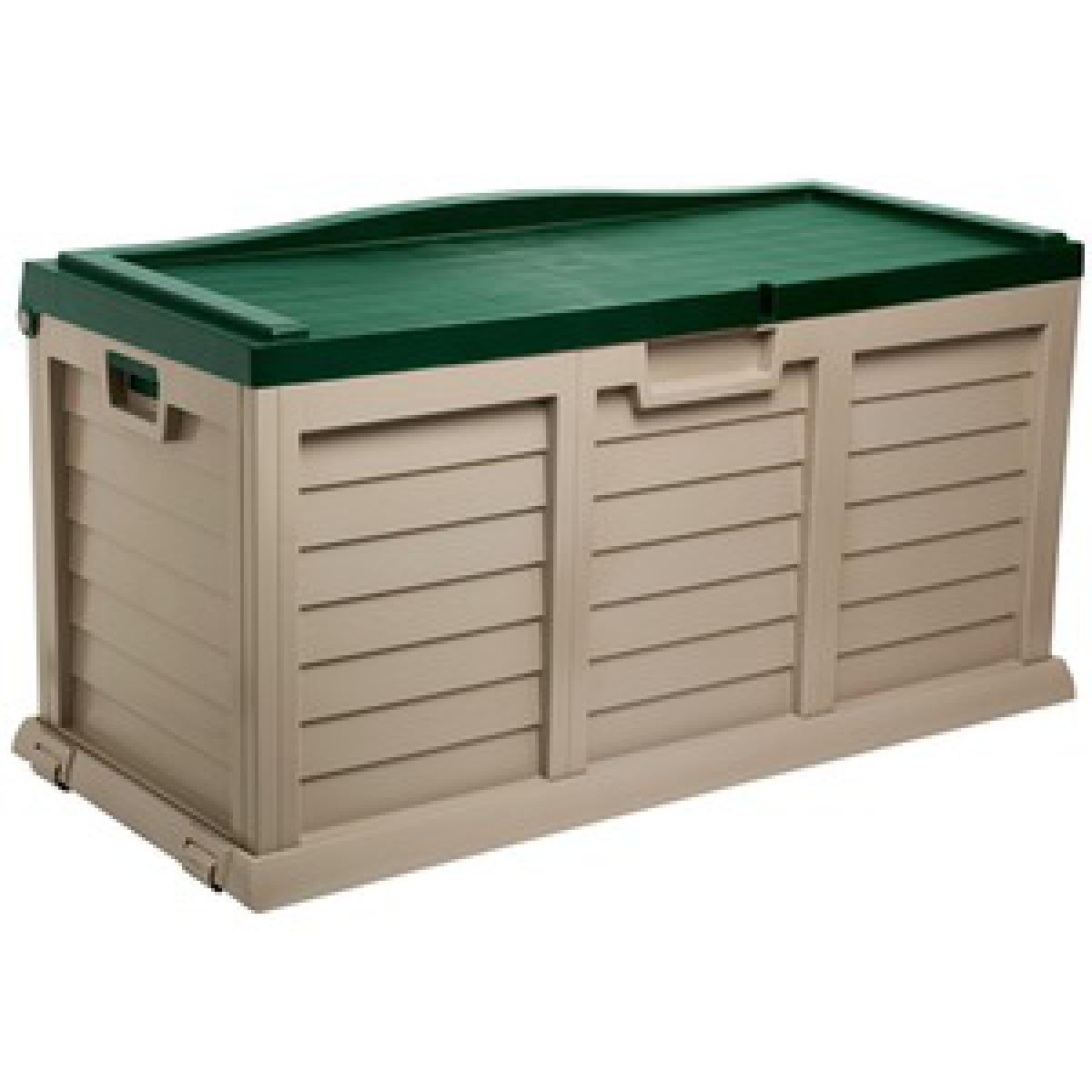 Model:14-811. This Starplast Storage Cushion Box is the perfect storage solution for your outdoors. It is made from weatherproof, heavy-duty polypropylene which makes it both durable and rust-free. A great addition to the garden, garage or patio, this storage box is made from tough, durable heavy-duty plastic and weatherproofed to prevent rusting all year round. The Storage Box comes flat-packed and can be assembled in minutes without the need for tools. As easy to move as it is to build, the Storage Box comes with integral wheels on one side, as well as a lockable heavy duty hinged lid keeping the contents within safe and secure. Ideal for storing Cushions, Tools, Toys, Garden Equipment and many other items.