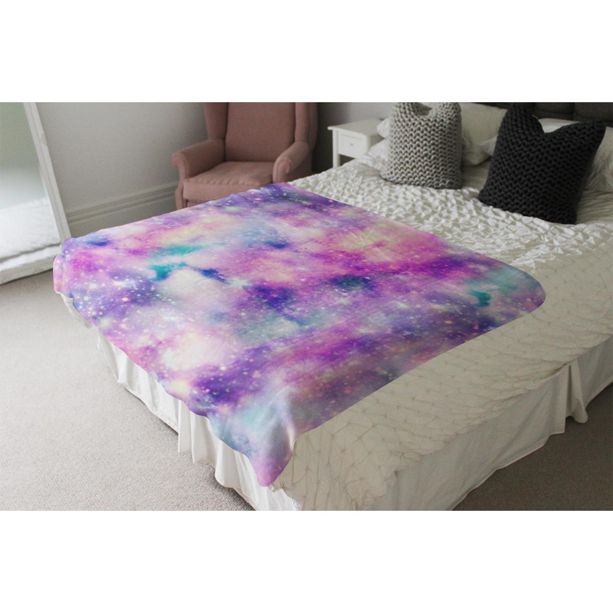 Starry Galaxy Print In Unicorn Colours Blanket - Pink