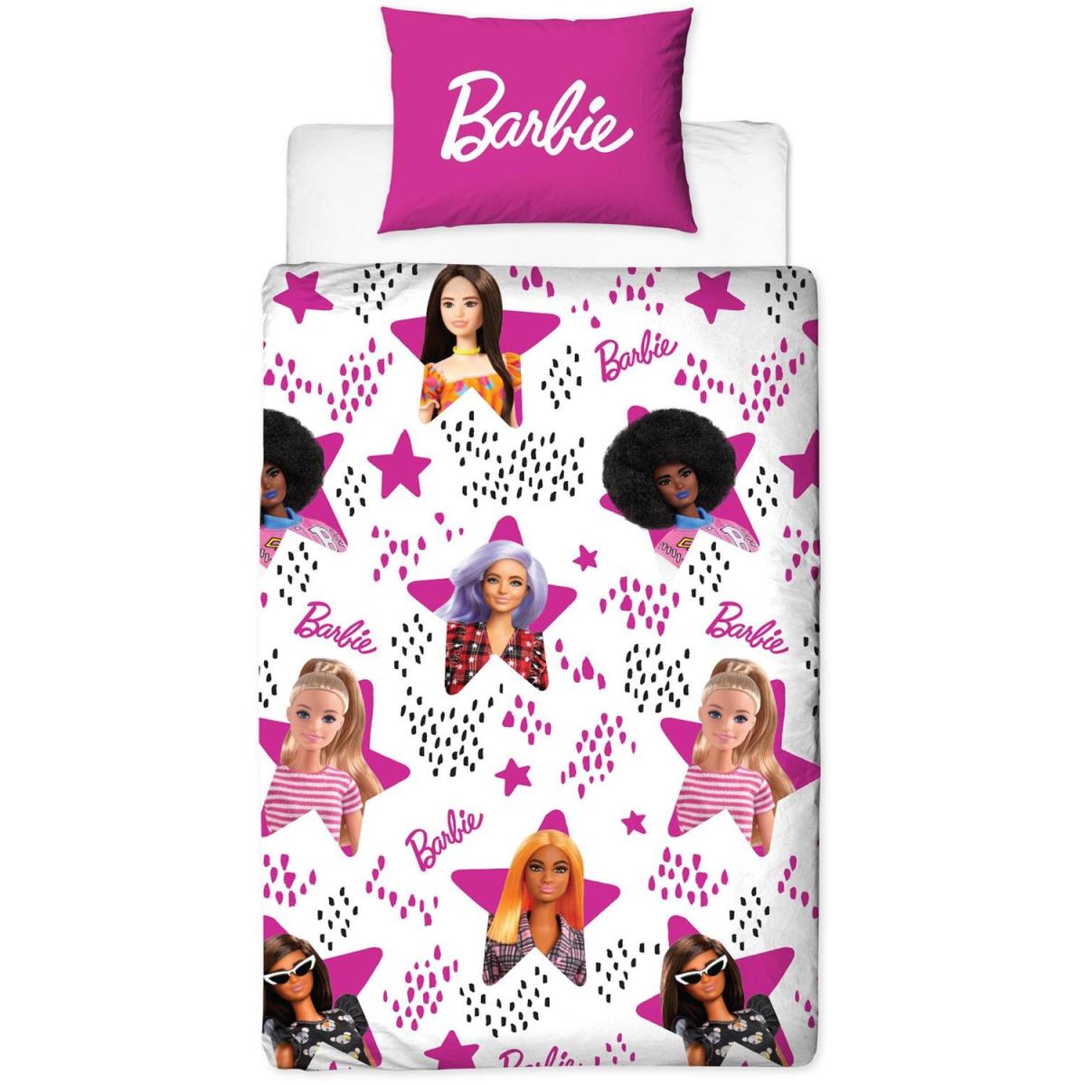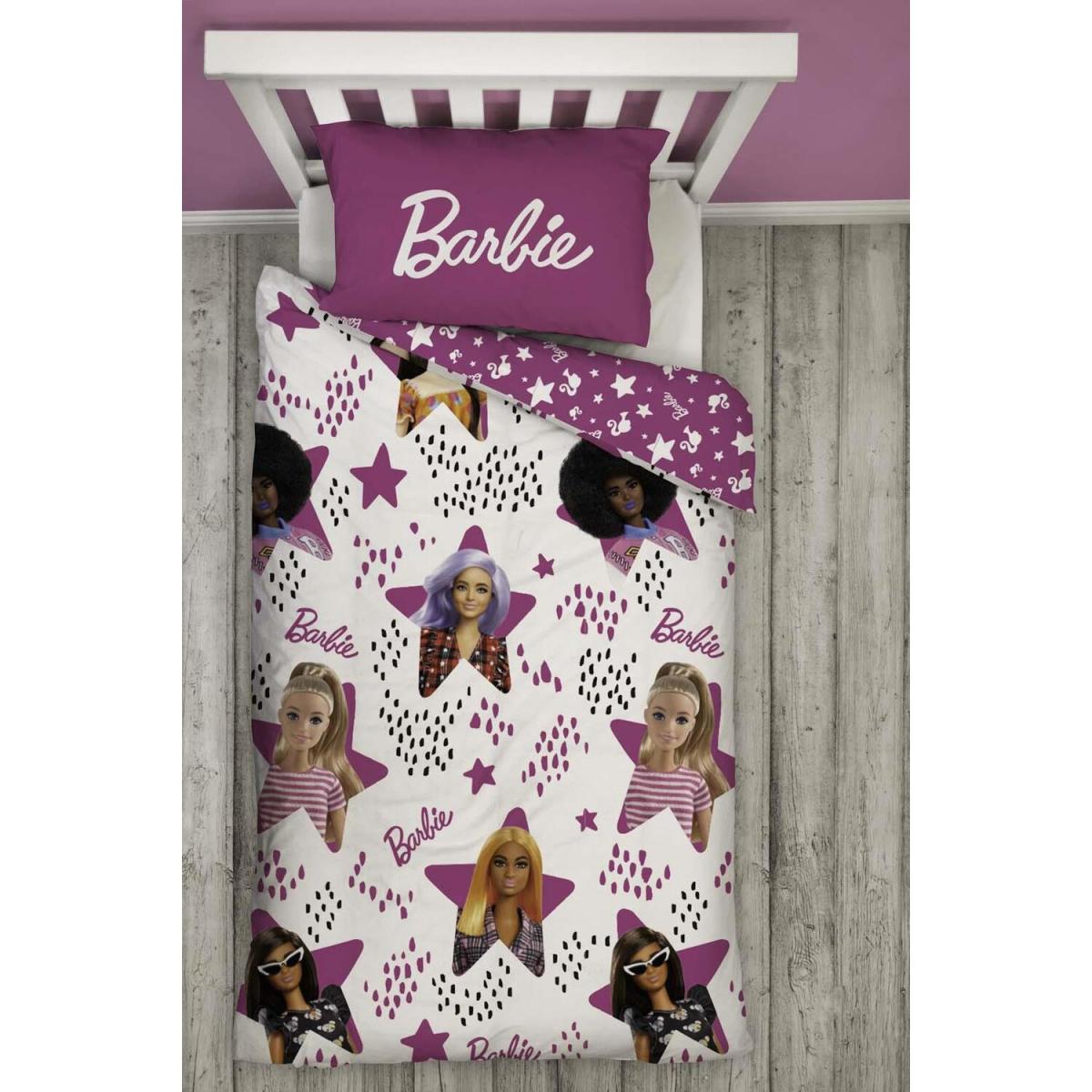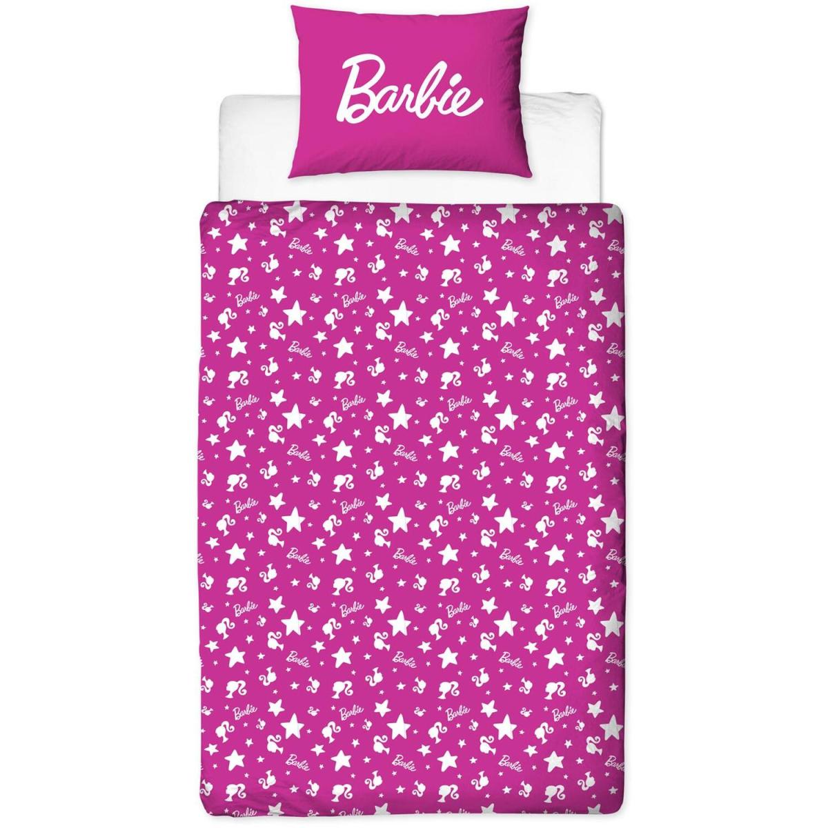 This 2-in-1 reversible duvet cover set featuring the white barbie icon print on a white base, will brighten any children's room. The reverse side is a contrasting white base with barbie figures, the bedding set comes complete with matching pillow case(s). This beautifully illustrated Barbie duvet is made from 100 polyester allowing for ultimate comfort and durability. This duvet cover will ensure the best night's sleep for your little ones.