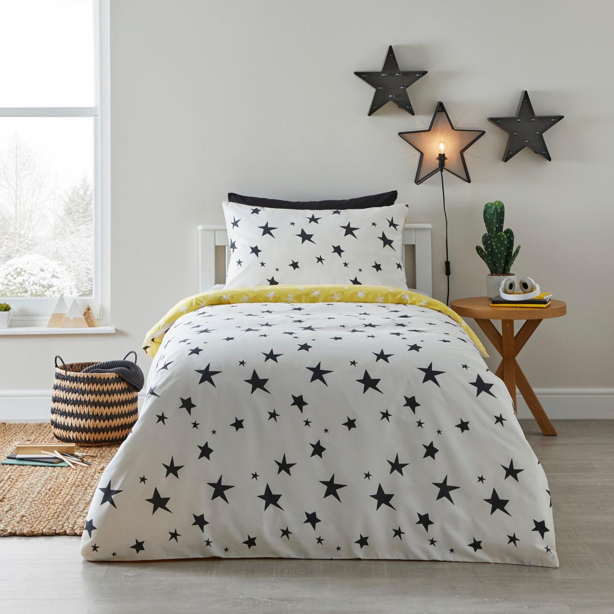 I love this stars reversible duvet set for its fun, multi-coloured design that adds a lively touch to any bedroom. It works particularly well in contemporary interiors or rooms that could benefit from a pop of colour and pattern, making it versatile enough to coordinate with both neutral and more vibrant colour schemes. For styling tips, consider keeping the surrounding décor simple to let the bedding be the focal point, and add in matching accessories like cushions or throws in solid colours that pick out one hue from the set. Its reversible feature also allows for quick updates-you can flip it over to create a new look in seconds, making it practical for those who like to change up their space without fuss. Overall, it’s a playful yet adaptable piece that can bring personality to a variety of bedroom schemes.