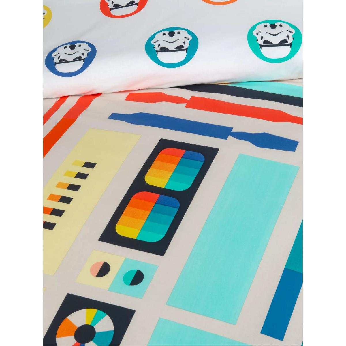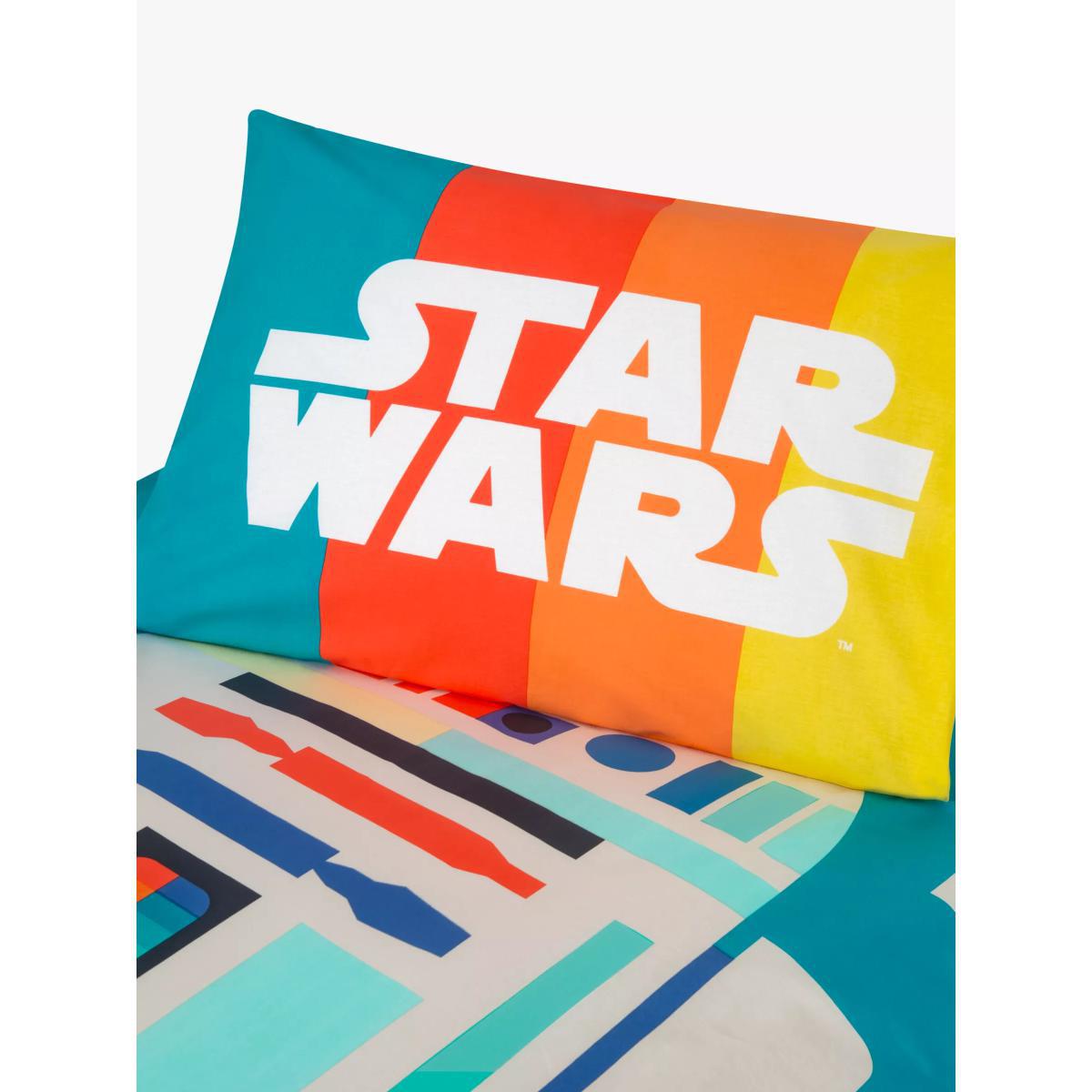 R2D2 is given a cool retro look in this playful Star Wars Duvet Cover set. The bold front design of this iconic robot, is complemented by a smaller scale colourful stormtrooper mask reverse print for added fun. Made from 100% pure cotton, front & reverse, helping regulate nighttime temperatures for a sound comfortable sleep. More Sustainably Sourced The cotton in this bedding has been produced in line with the Better Cotton Initiative (BCI). This is a not-for-profit organisation which exists to ‘make global cotton production better for the people who produce it, better for the environment it grows in, and better for the sector's future. BCI works with partners around the world such as WWF, Solidaridad and Cotton Connect to train farmers to produce cotton more sustainably. By buying cotton products from John Lewis & Partners, you're supporting the training of these farmers to use water efficiently, care for the health of the soil and natural habitats, reduce the use of the most harmful chemicals and apply principles of fair and decent work.