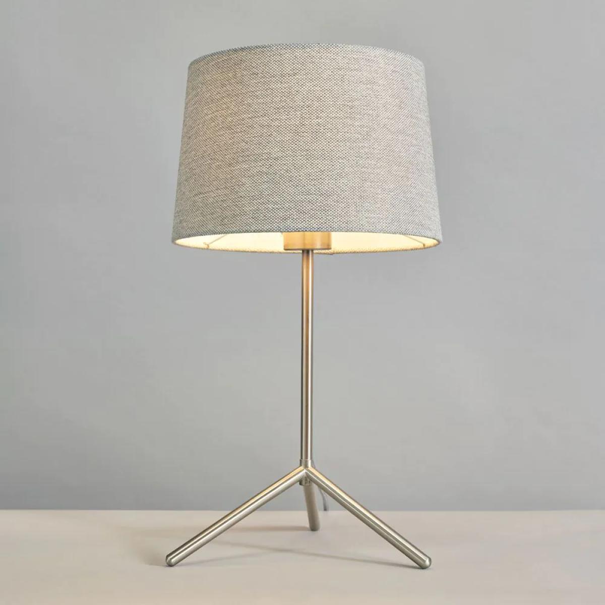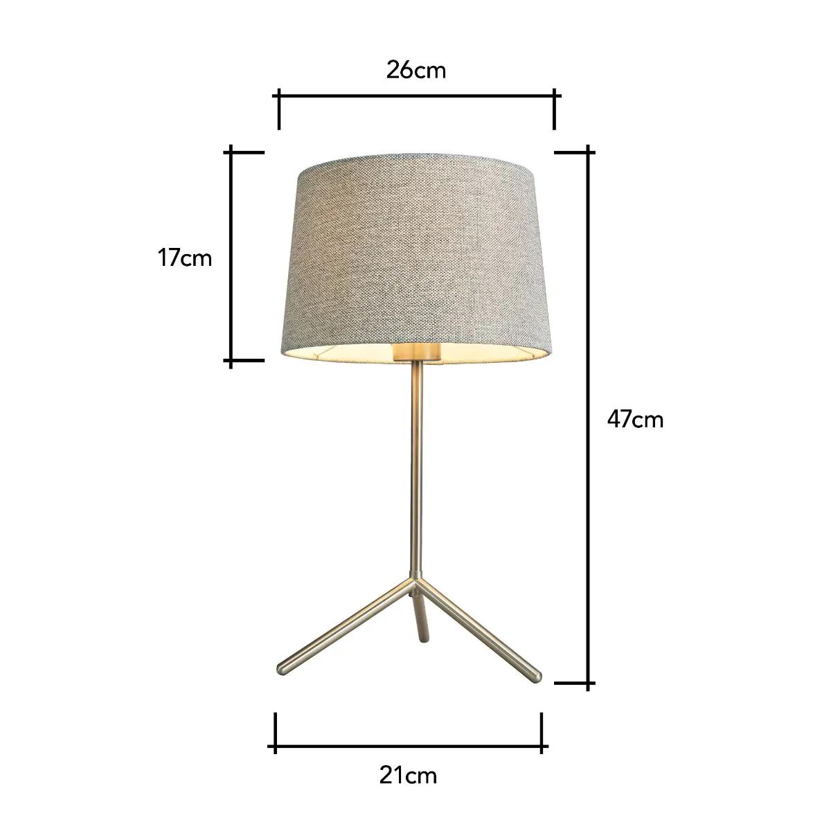 Stassy Tripod Feet Table Lamp with Grey Shade, Satin Nickel