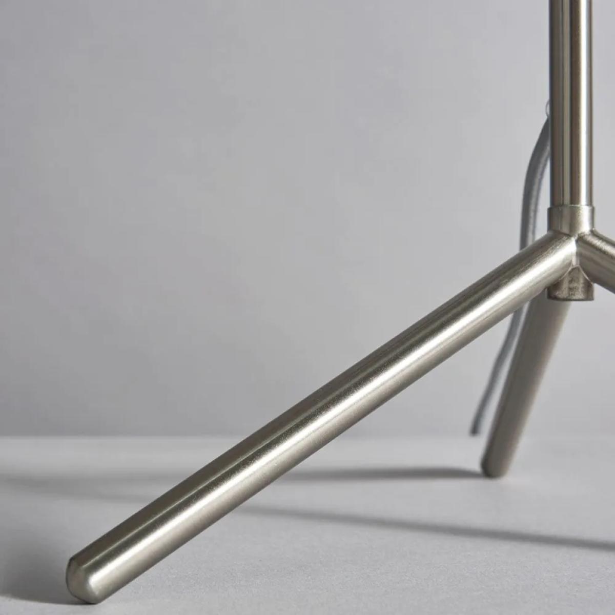 I love this tripod lamp for its sleek, minimalist silhouette and the versatile grey shade, which makes it a great fit for both contemporary and Scandi-inspired interiors. The satin nickel finish gives it a subtle touch of sophistication that works well with neutral palettes but can also complement bolder colours when styled thoughtfully. It’s perfect as a bedside or side table piece, adding both ambient light and visual interest. Practical styling tips include pairing it with textured ceramics or natural wood accents to highlight its neutral tones or placing it alongside indoor plants to bring a fresh, lively feel. Overall, it’s a functional yet effortlessly chic addition to any living space.