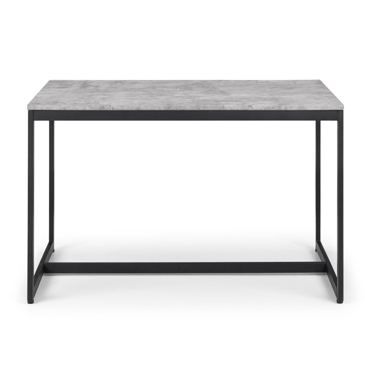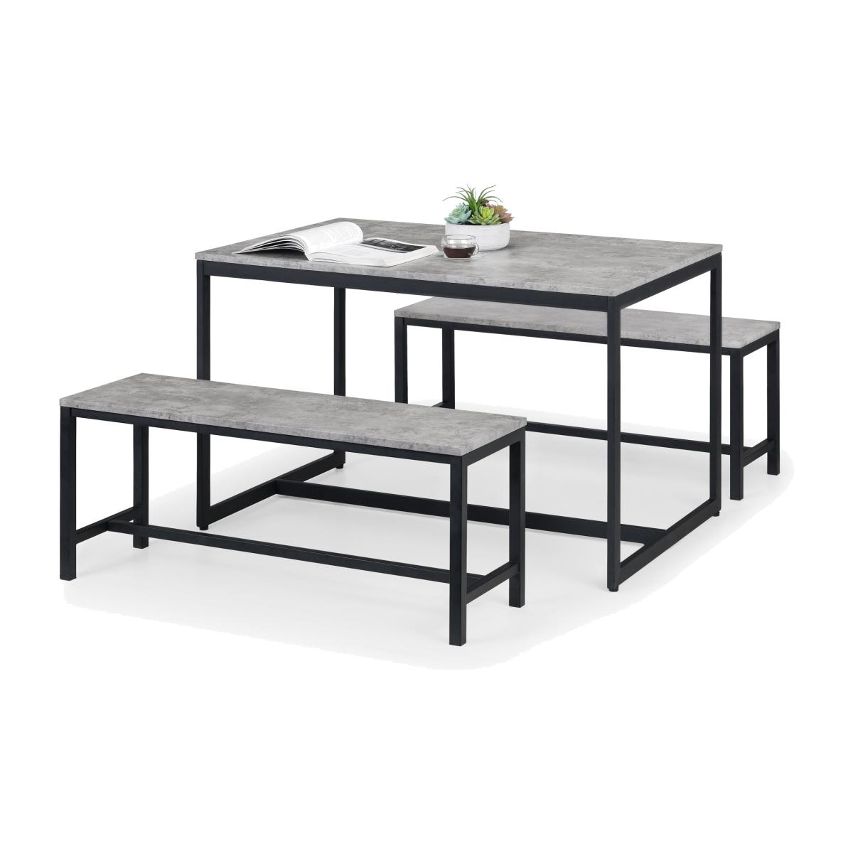 With its modern industrial design, the Staten dining set features concrete-effect table and bench tops and contrasting black metal frames. This stylish dining set would make a great addition to any modern home and is supplied with a sturdy dining table and two matching benches that tuck neatly away when not in use. Please note, unfortunately we cannot deliver this item to Northern Ireland or the Channel Islands.