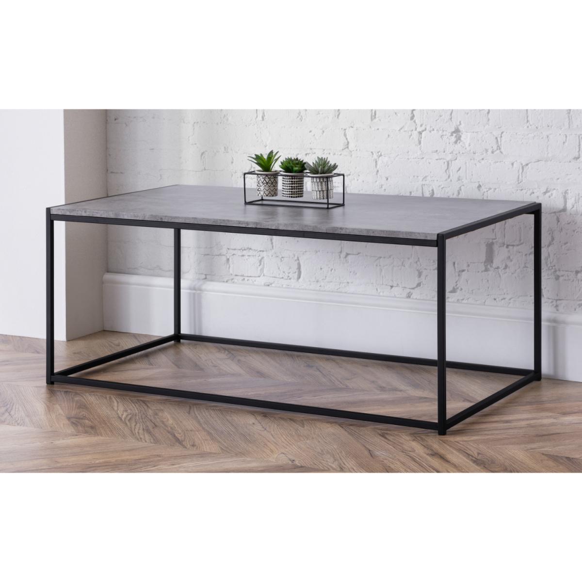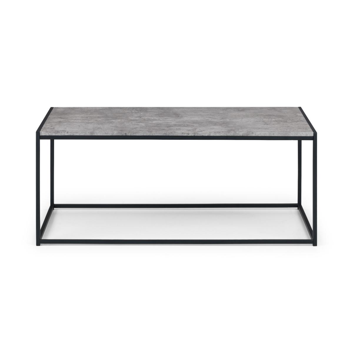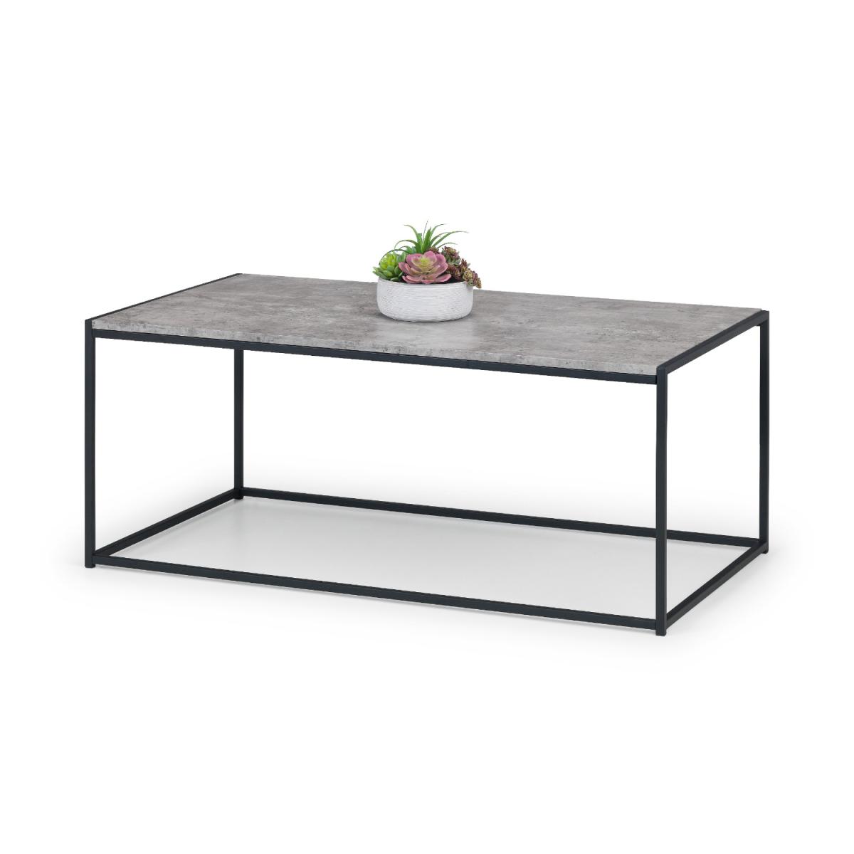 Simplistic in design with a contemporary style, the Staten Coffee Table will add a stunning industrial look to any living and dining area. Constructed from a black coated metal frame, complemented by a striking concrete effect tops, to create a very stylish, modern product. Part of the Julian Bowen Staten Dining and Occasional Collection.