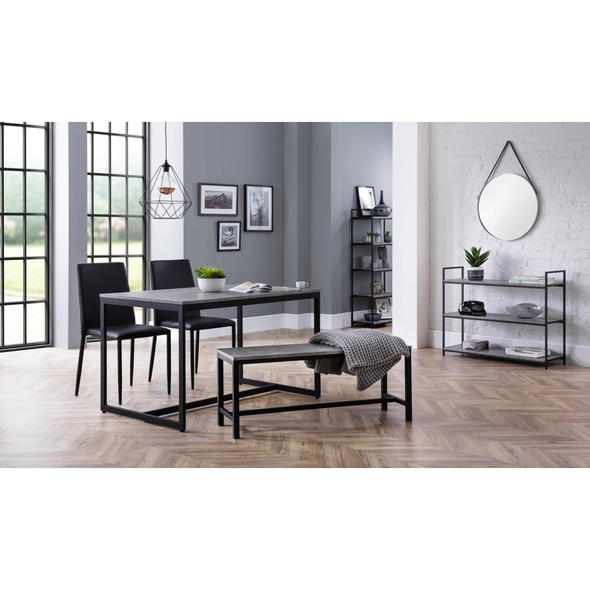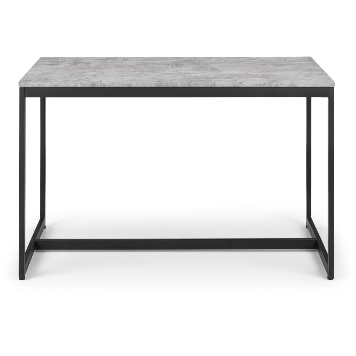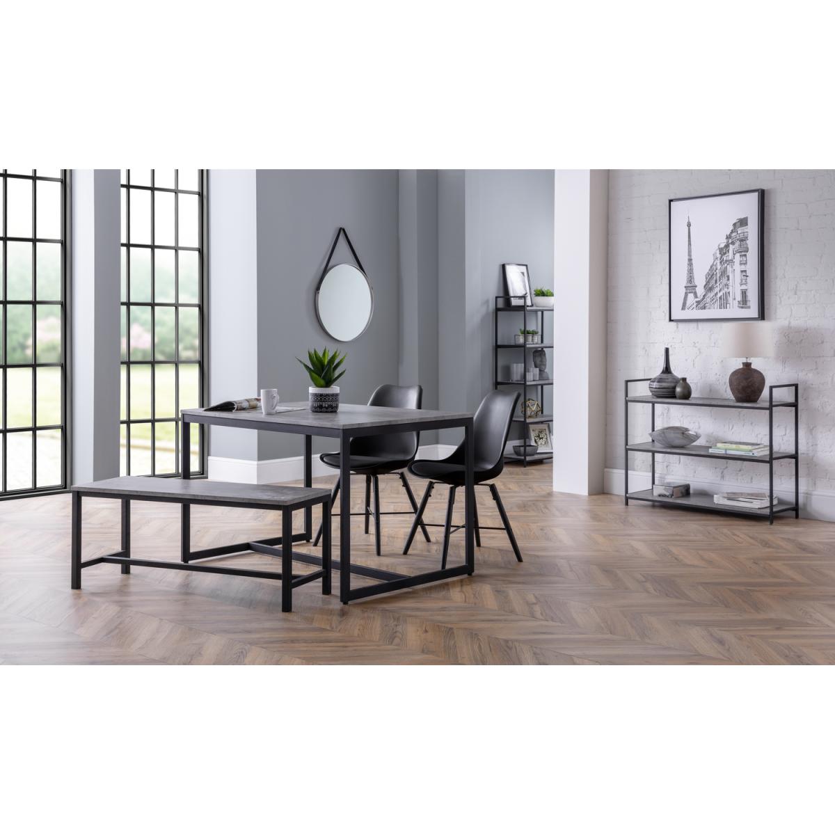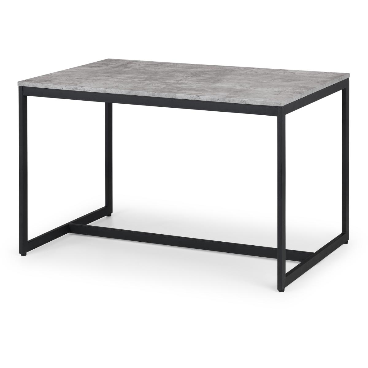 Simplistic in design with a contemporary style, the Staten Dining Table will add a stunning industrial look to any living and dining area. Constructed from a black coated metal frame, complemented by a striking concrete effect tops, to create a very stylish, modern product. Part of the Julian Bowen Staten Dining and Occasional Collection.
