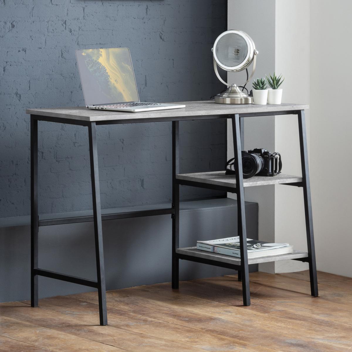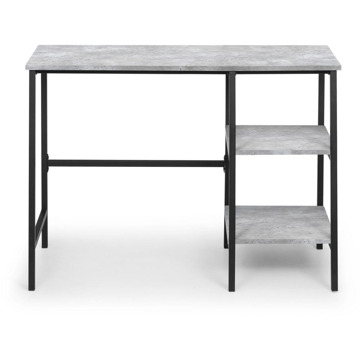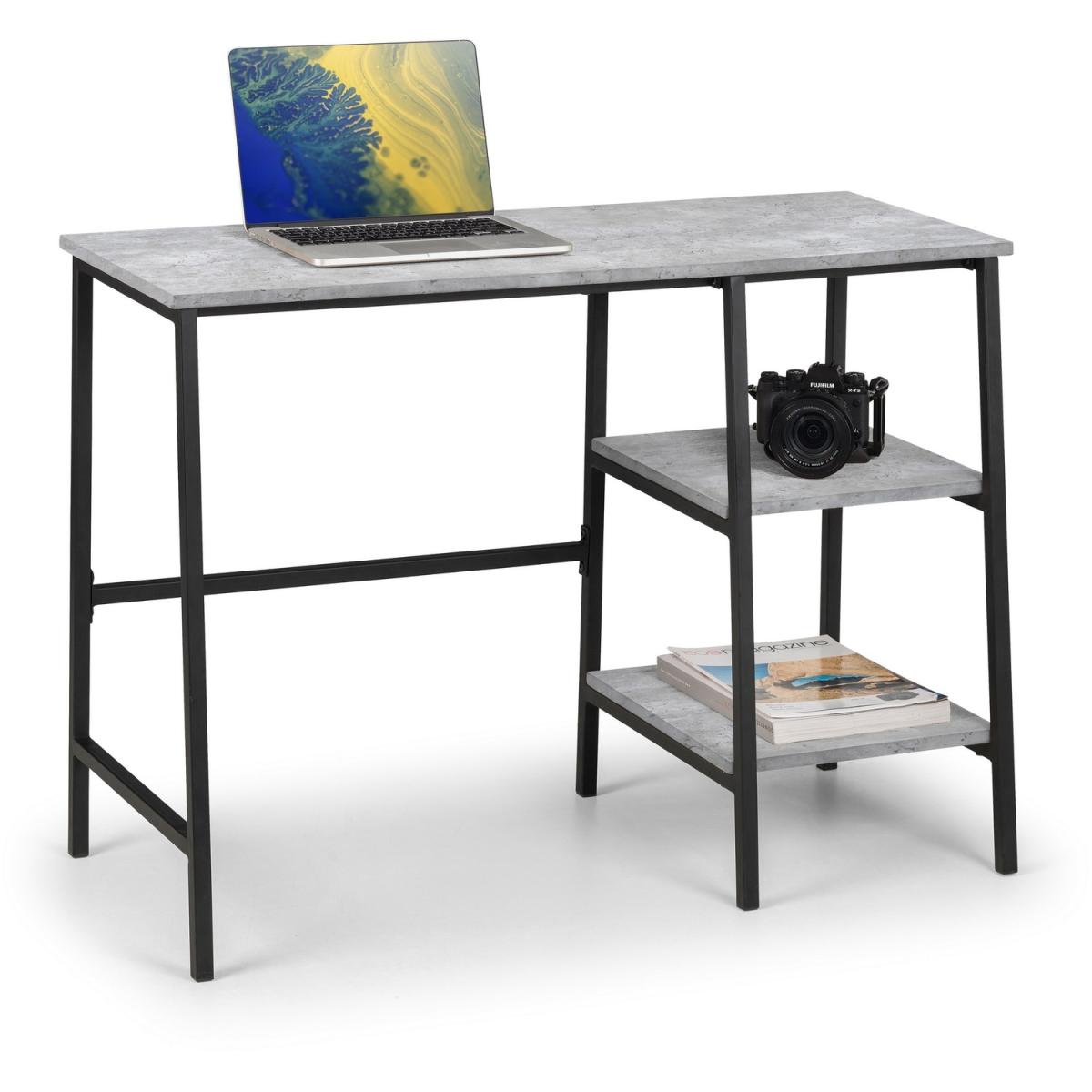 Simplistic in design with a contemporary style, the Staten Desk will add a stunning industrial look to any home office. Constructed from a black coated metal frame, complemented by a striking concrete effect tops, to create a very stylish, modern product. Part of the Julian Bowen Staten Dining and Occasional Collection.
