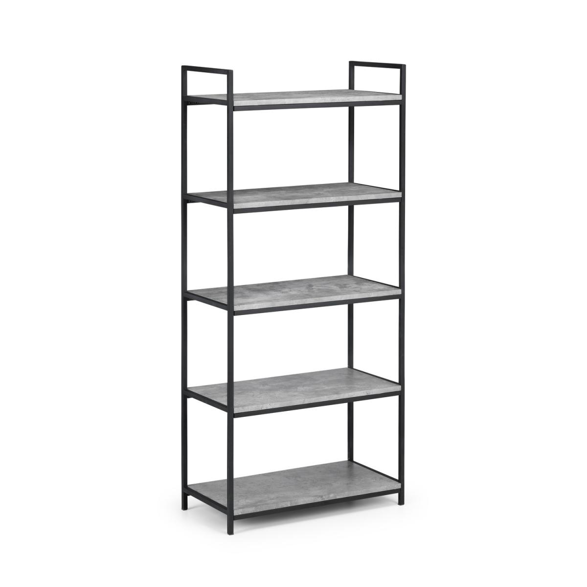 Staten Tall Bookcase with Black Metal Frame & Faux Concrete Shelves - Julian Bowen