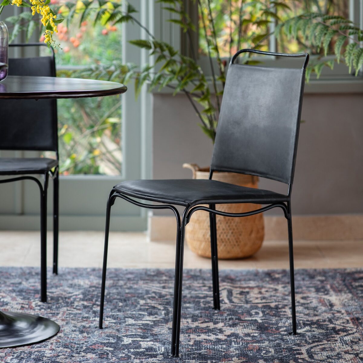 I love these black leather dining chairs for their sleek, contemporary look that effortlessly suits modern and minimalist interiors. Their simple yet refined design makes them versatile enough to complement a variety of colour schemes and table styles. They work particularly well in spaces that benefit from a touch of sophistication, like a monochrome palette or an industrial-inspired setting. For styling tips, pair them with a dining table with clean lines and add textured cushions or colourful tableware to bring a bit of personality. These chairs are practical too, easy to wipe clean and durable, making them ideal for both everyday dining and entertaining guests.
