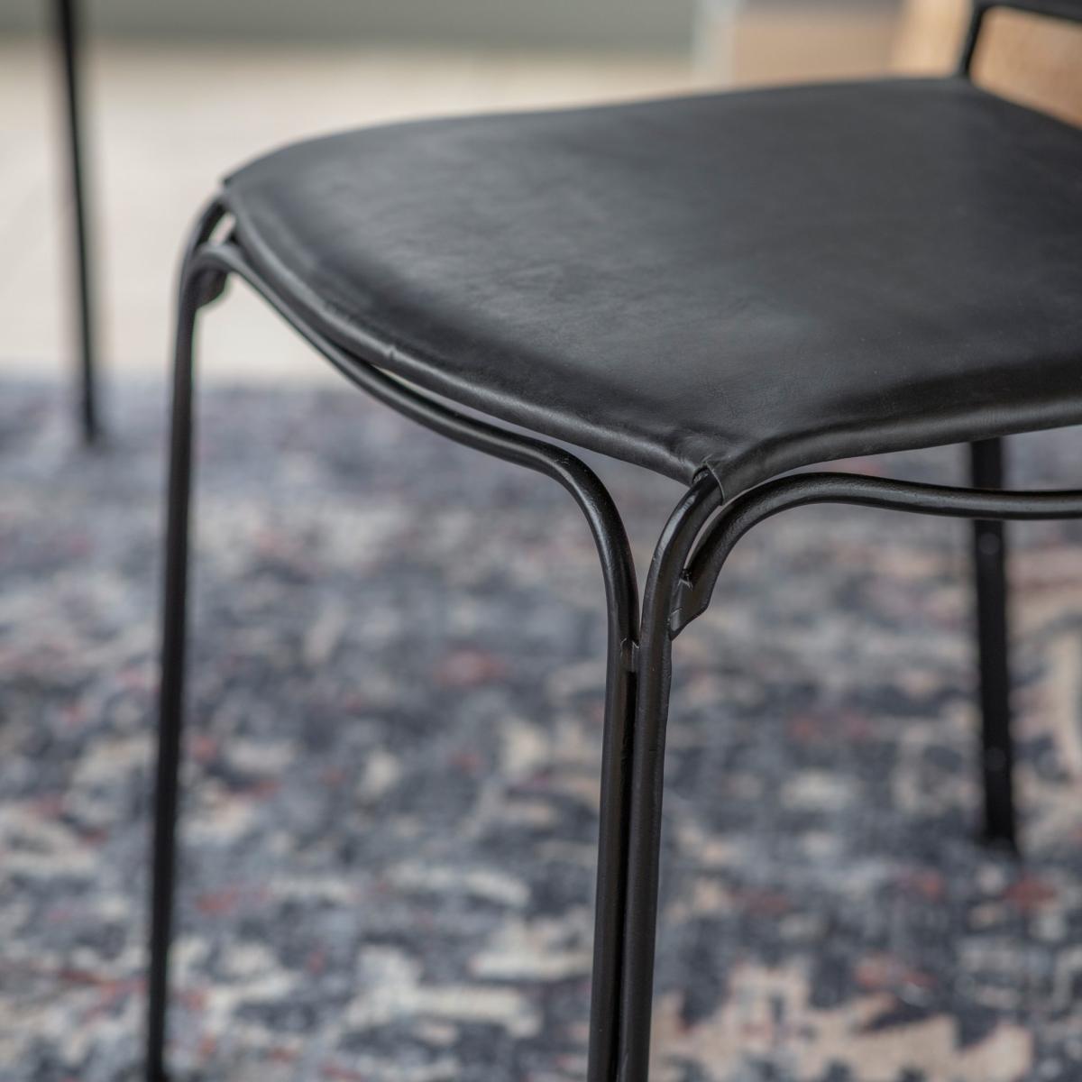 Stunning contemporary dining chairs, featuring black metal frames paired with top grain leather, for a chic sophisticated look.