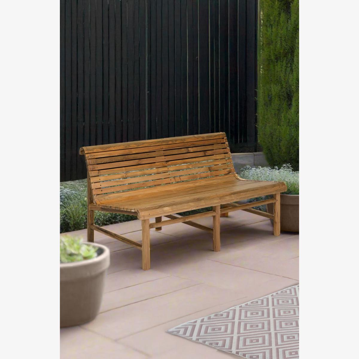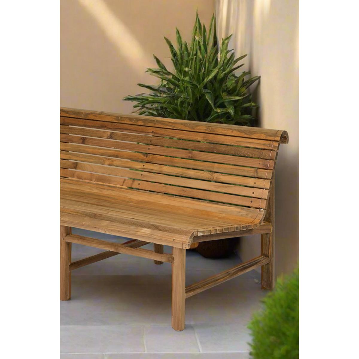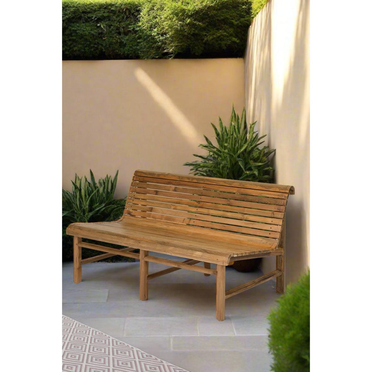 <!--td -- > Say hello to your new favourite garden bench. This traditional station bench is the kind of piece that steals the show. Crafted from sturdy reclaimed teak, this wooden garden bench is all about natural texture and timeless style – with a gorgeously smooth finish and gentle curves that make it so easy to sink into. And can we talk about that copper wire detail? Just a little something special that runs along each side, giving it a subtle, stylish twist. With adjustable support in the middle and black foot caps to help keep water at bay, this vintage-style bench is built for real life and real lounging. Pop this statement bench in your garden, surround it with lush blooms and let the good vibes settle in. - Station Bench Style Wooden Garden Bench - Measures: W140cm x H79.5cm x D76.5cm - Seat Height:43.5cm- Width Of Each Slat: 4cm- Height From Seat To Top Of Back Rest: 43.5cm - Material: Teak Wood- Natural finishing means there isn't any varnish applied for the timber, therefore spills should be removed immediately to prevent staining the surface- For regular care, clean the production from the dust with soft cloth/brush. For thorough cleaning in case of mold and stain, use damp cloth with natural soap and wipe in the direction of the grain- Avoid letting water stand on the surface of furniture for too long, use a soft cloth