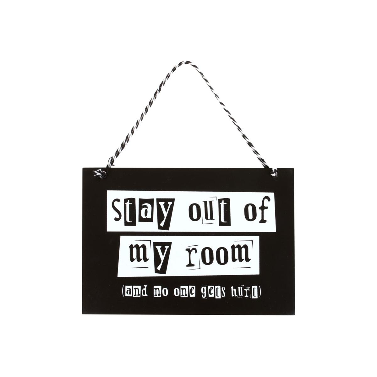This hanging sign is a must-have for those living with nosy roommates or family members. Its bold black and white design sends a clear warning to stay out of your room, preventing any unwanted intrusions. Keep your personal space private and secure with this eye-catching accessory.