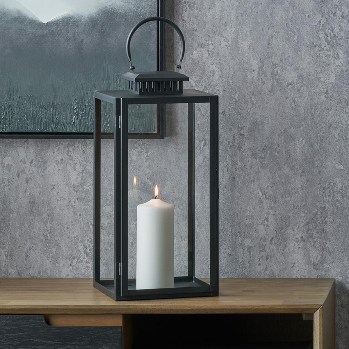 I love this lantern for its clean, geometric silhouette and versatile black finish. It's a great piece for adding a modern touch to both indoor and outdoor spaces, especially if you want to create a cosy yet contemporary ambiance. It works well in minimalist, industrial or scandinavian interiors, but can also add contrast in more traditional settings. Practical styling tips include using it as a centrepiece on a dining table, or pairing it with smaller candles and decorative objects on a sideboard or mantel for layered interest. Its size and transparent glass make for easy integration, letting the flame take centre stage while providing a sleek, structured look.