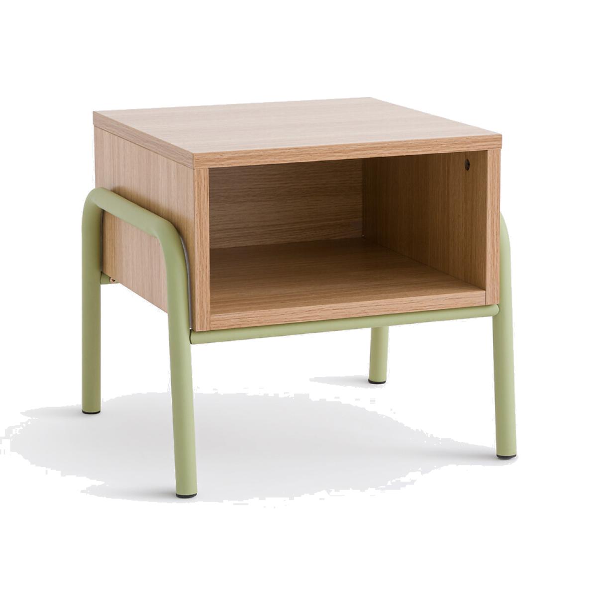 I love this bedside table because of its playful yet functional design. The combination of natural wood with the pastel green legs gives it a fresh, modern feel that works beautifully in contemporary or Scandinavian-inspired interiors. It's versatile enough to sit comfortably in children’s bedrooms, guest rooms, or even as an occasional side table in a living space. For styling tips, try pairing it with neutral bedding or cosy textiles to highlight its simplicity, or add colourful accessories like a small lamp, jewellery dish, or a stack of books to create a personalised look. Its open shelf offers practical storage, making it ideal for keeping nighttime essentials within easy reach without cluttering the space.