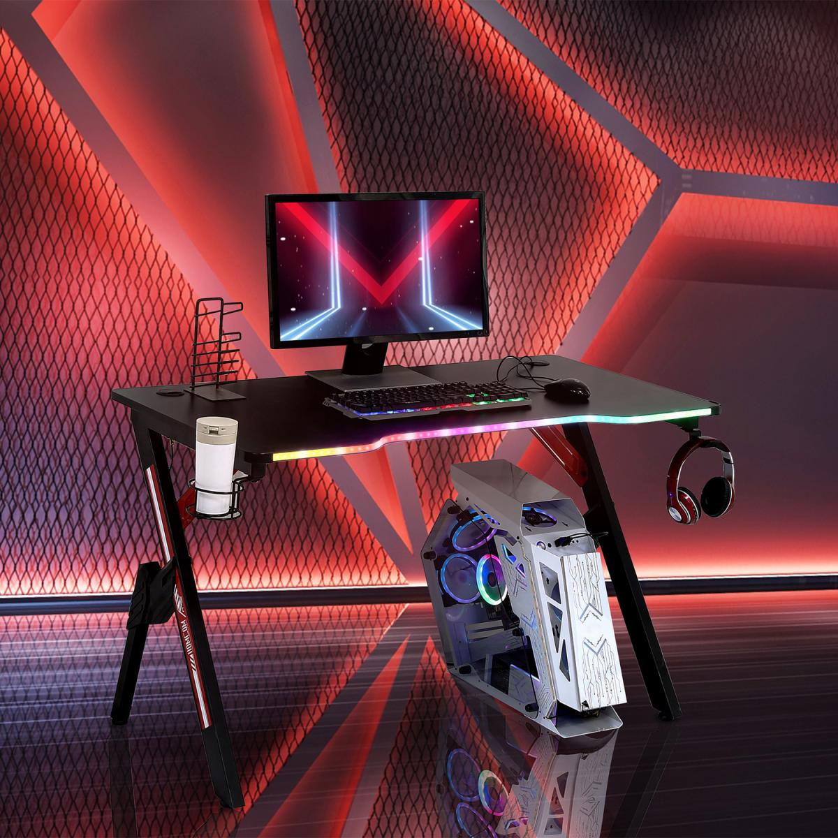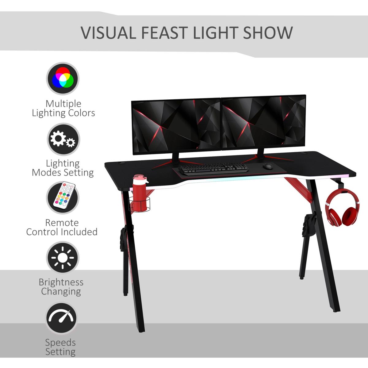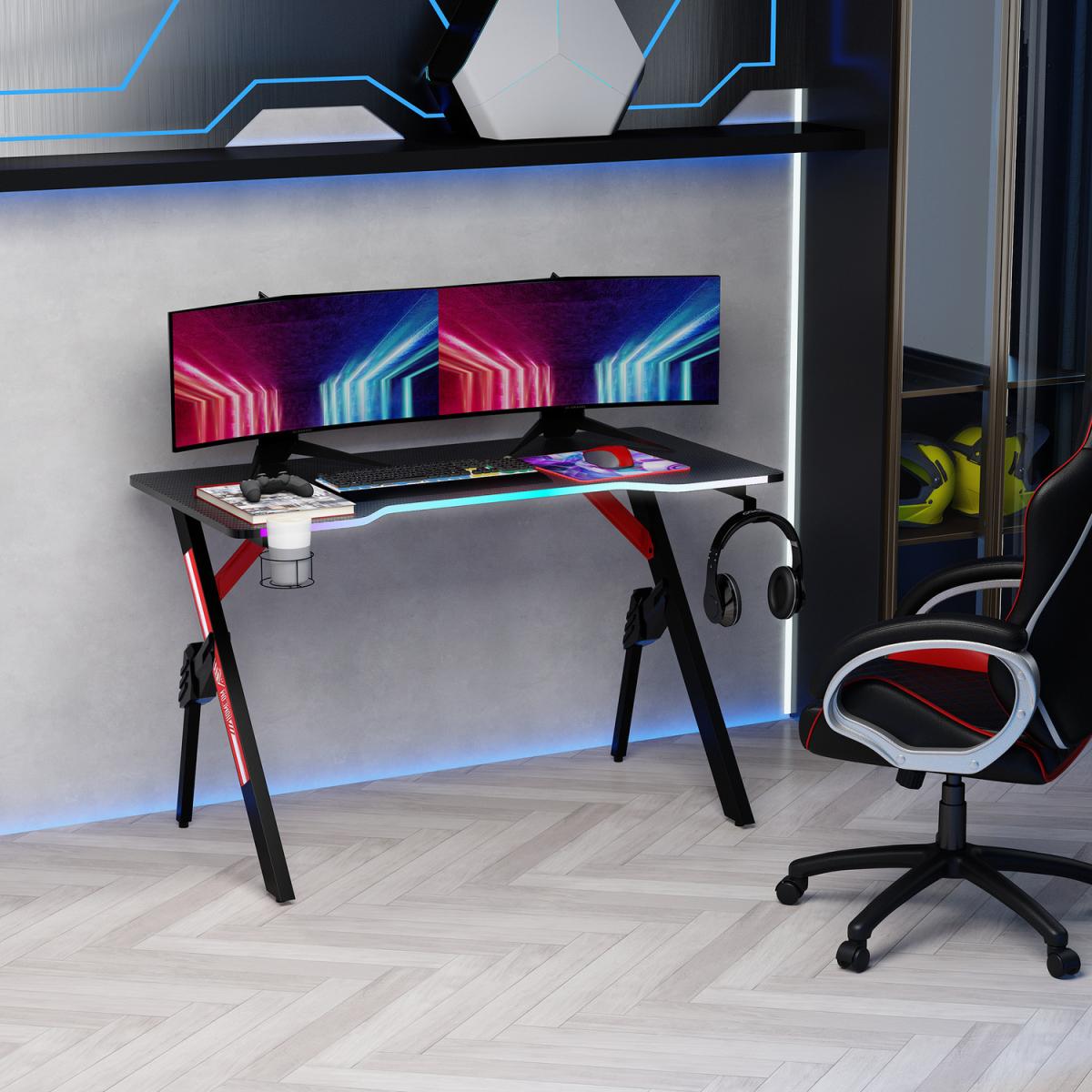 Steel Frame 1.2m Gaming Desk with RGB Light - Black and Red