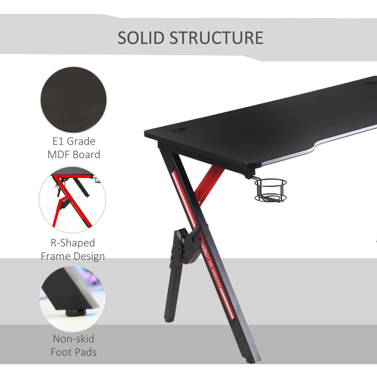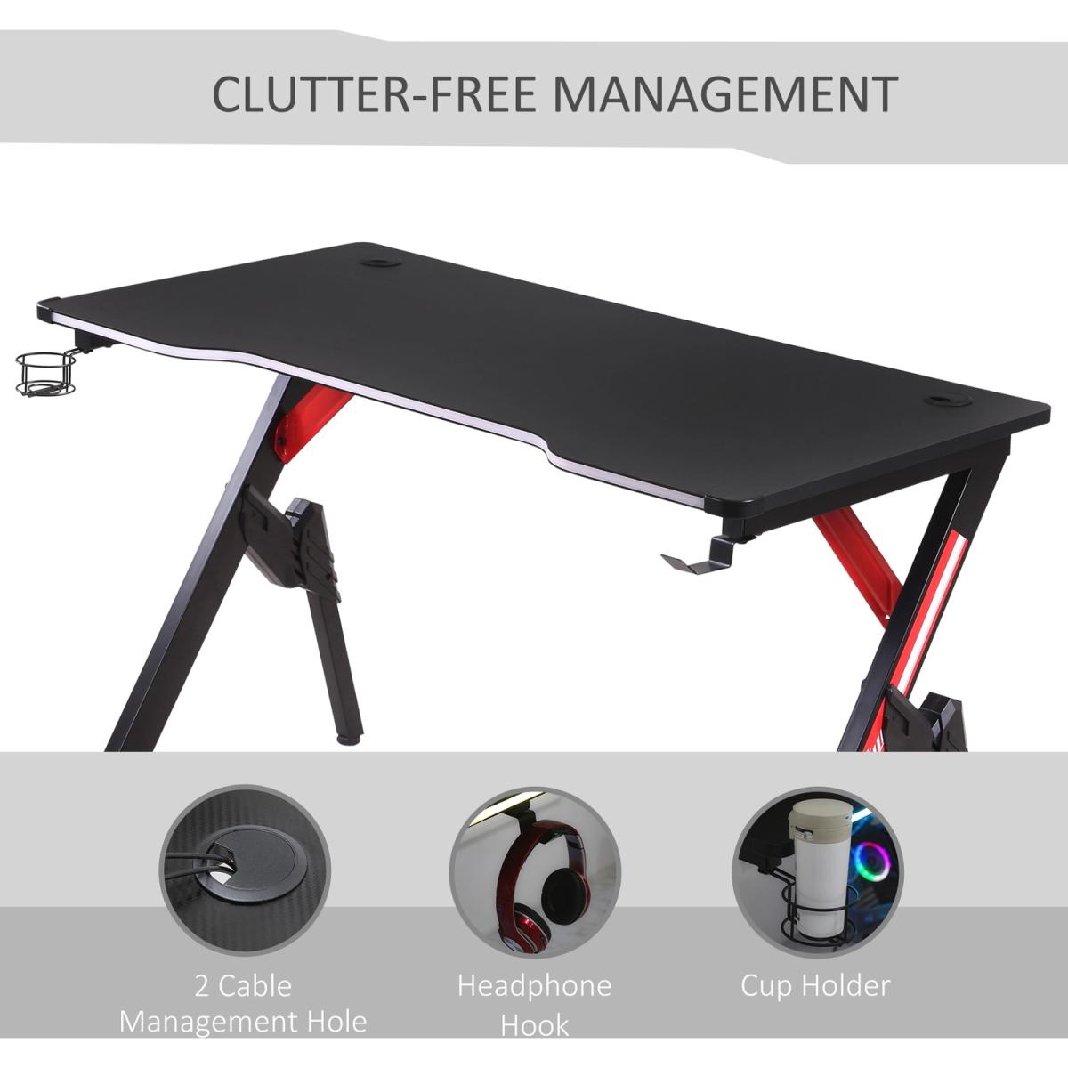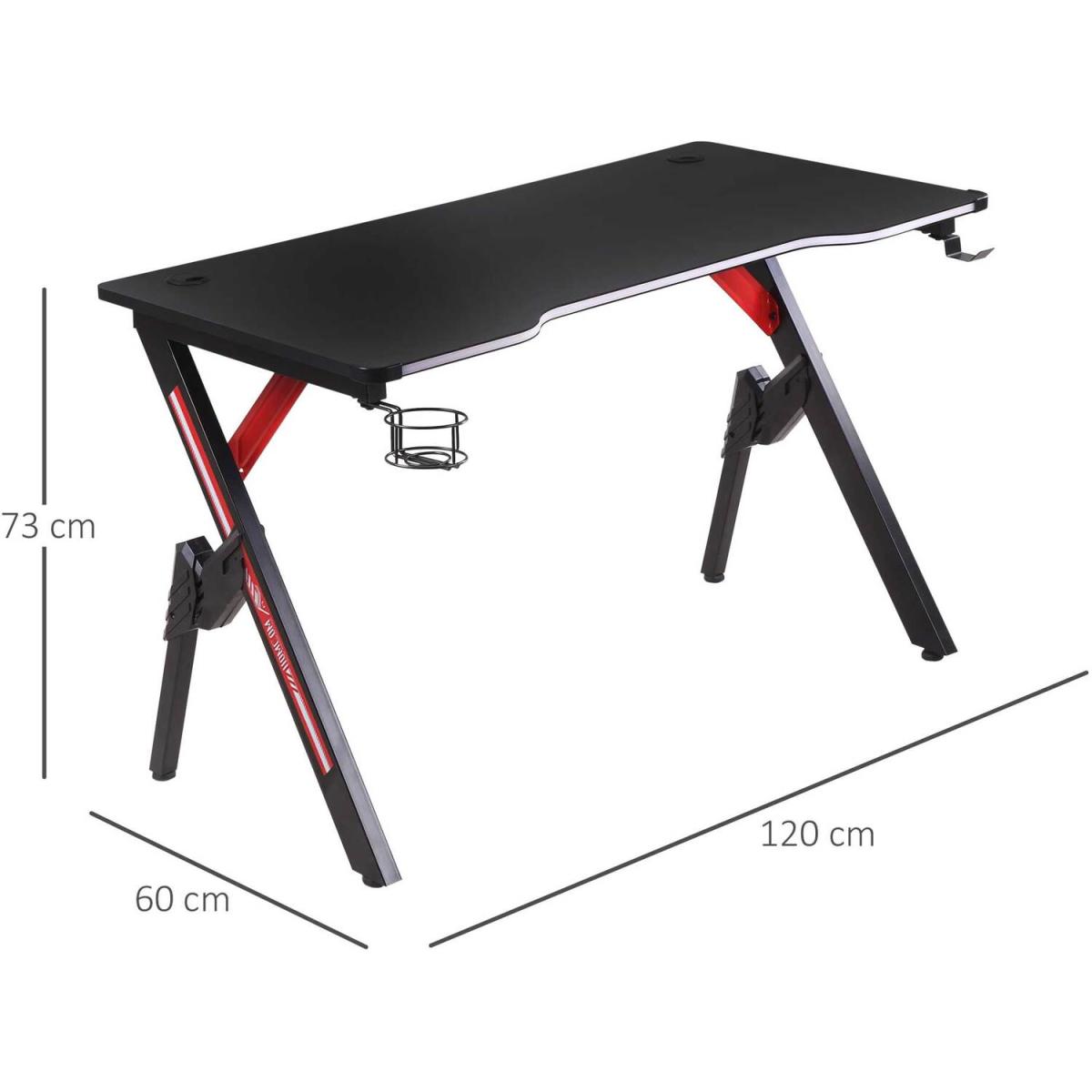 Steel Frame 1.2m Gaming Desk with RGB Light - Black and Red
