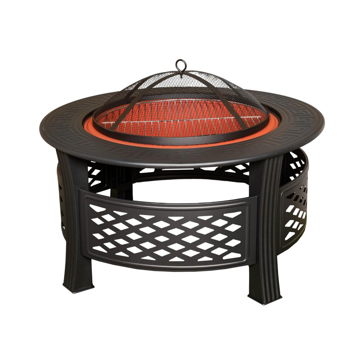 Get cosy on those cool summer evenings with this Samuel Alexander Black Steel Round Fire pit BBQ. With a round black and copper fire bowl design, this fire pit will compliment your outdoor space giving both warmth and charm. Fire pits prolong the enjoyment of your garden or patio area through spring, summer and autumn. A fire pit creates a warm al fresco lounge space, an extension of your home where you can relax and socialise whilst providing the perfect focal point for an outdoor sitting area. Featuring a 3-in-1 design, this can be used as a log burner, BBQ and a drinks cooler ice bucket making this modern fire pit the perfect addition to any garden or patio area. With a stylish, diamond pattern around the outside of the fire pit with four sturdy, curved legs, this patio heater BBQ will effortlessly blend in with any existing garden furniture. Included with this is a BBQ grill grid, a log/charcoal burner grill grid, a mesh cover lid to protect from flying ash and a fire poker with a wooden handle. When not in use the fire pit is supplied with a heavy-duty, waterproof black cover to protect and extend its longevity ensuring use for years to come. The fire pit is supplied flat-packed and self-assembly is required with instructions included.