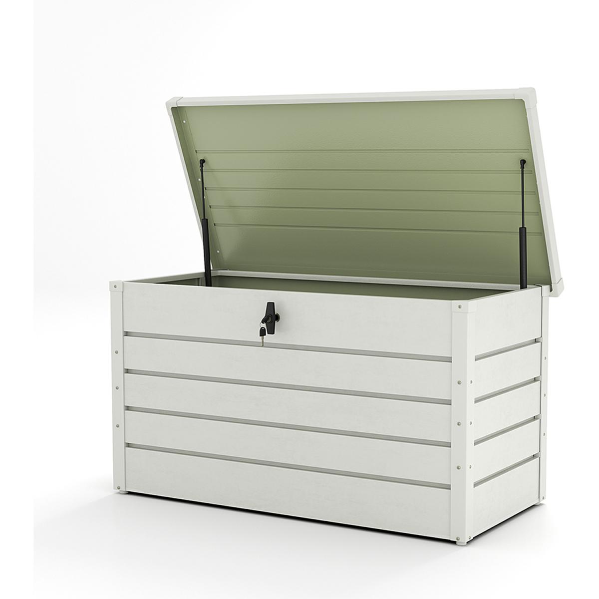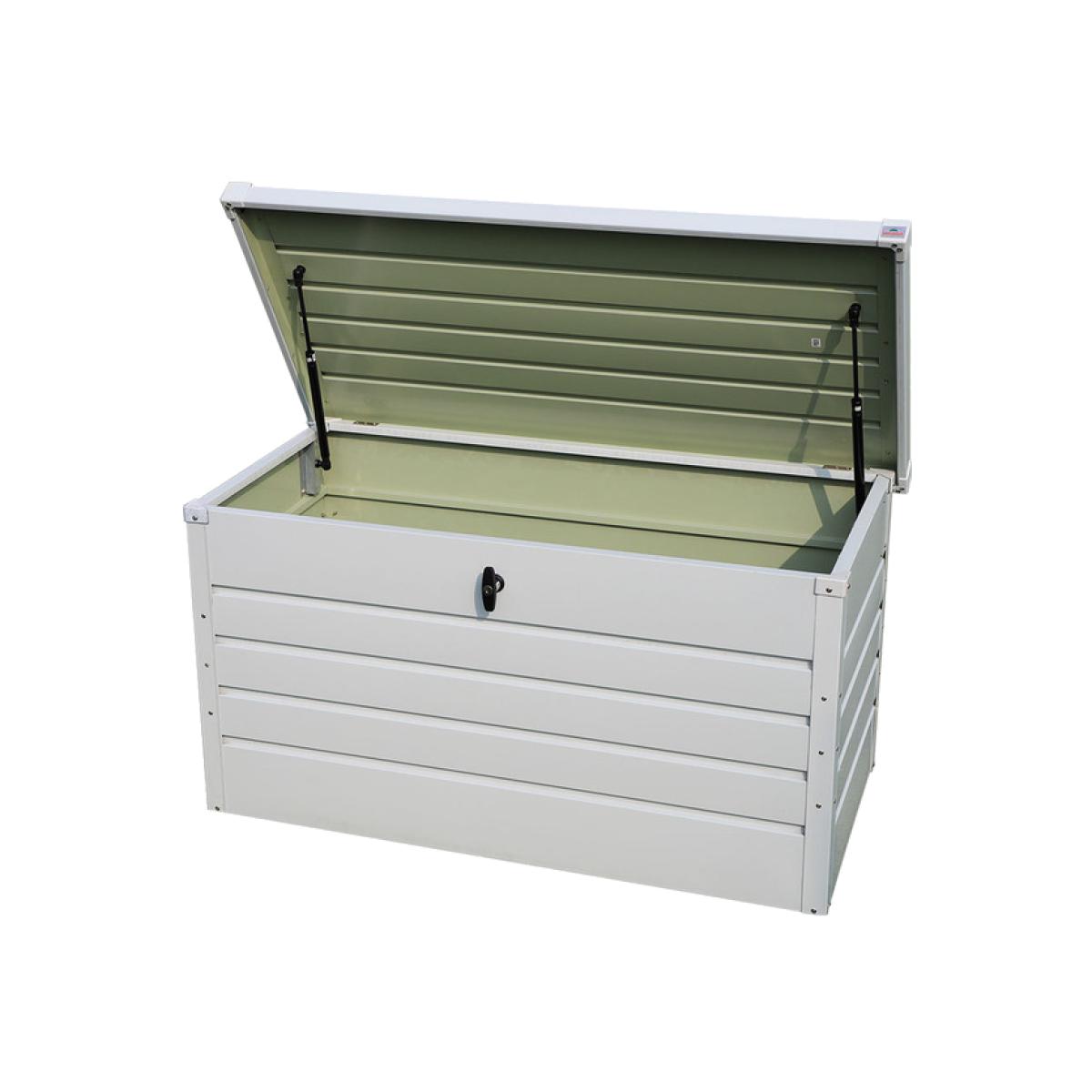 This is a solid cabinet with a large storage capacity. It outstands for its robust galvanized steel material. Thanks to it, the storage cabinet is very durable and can withstand bad weather conditions. What's more, it is easy to tend to as well. You can be relieved because your garden tools can be preserved unharmed inside the box with an attached lock.