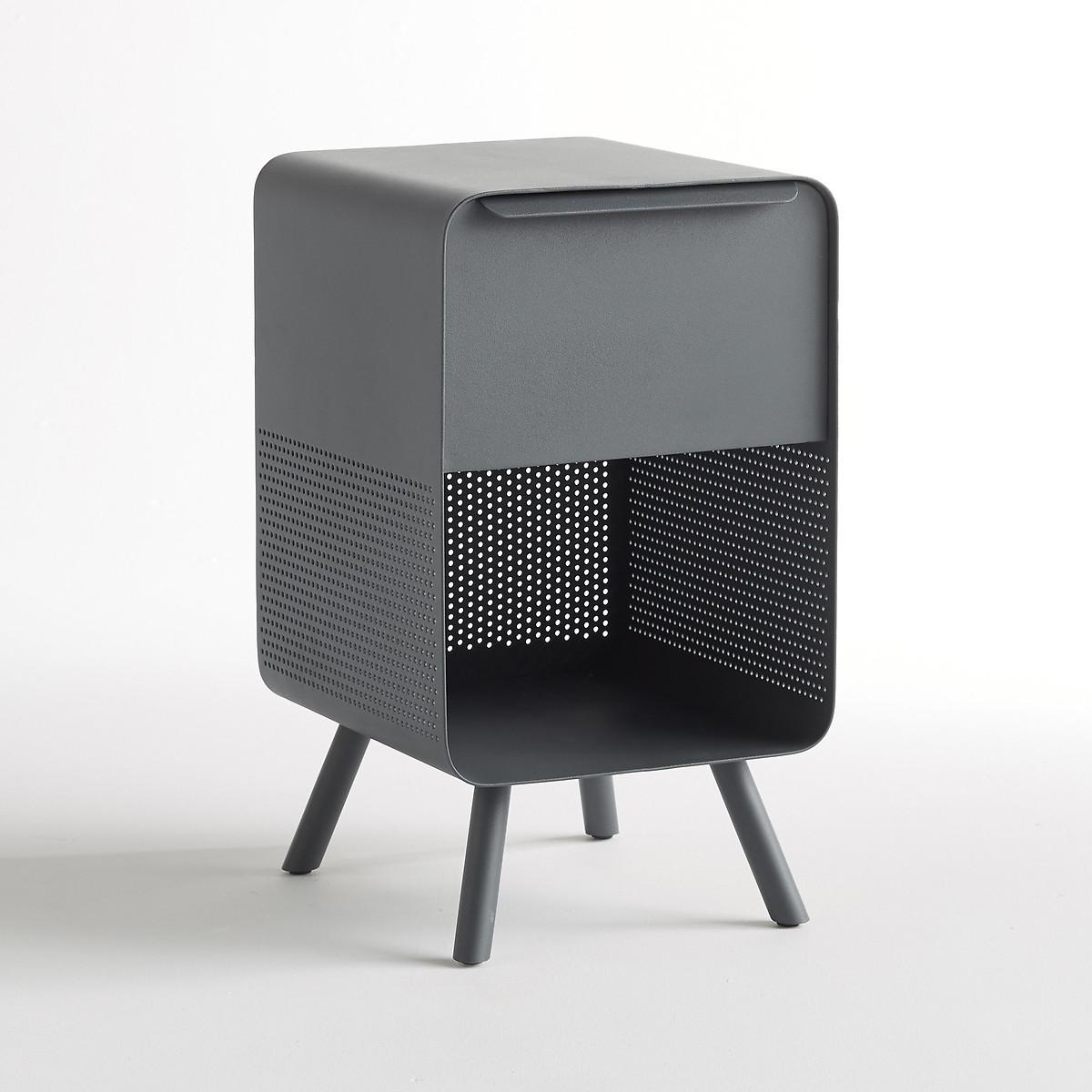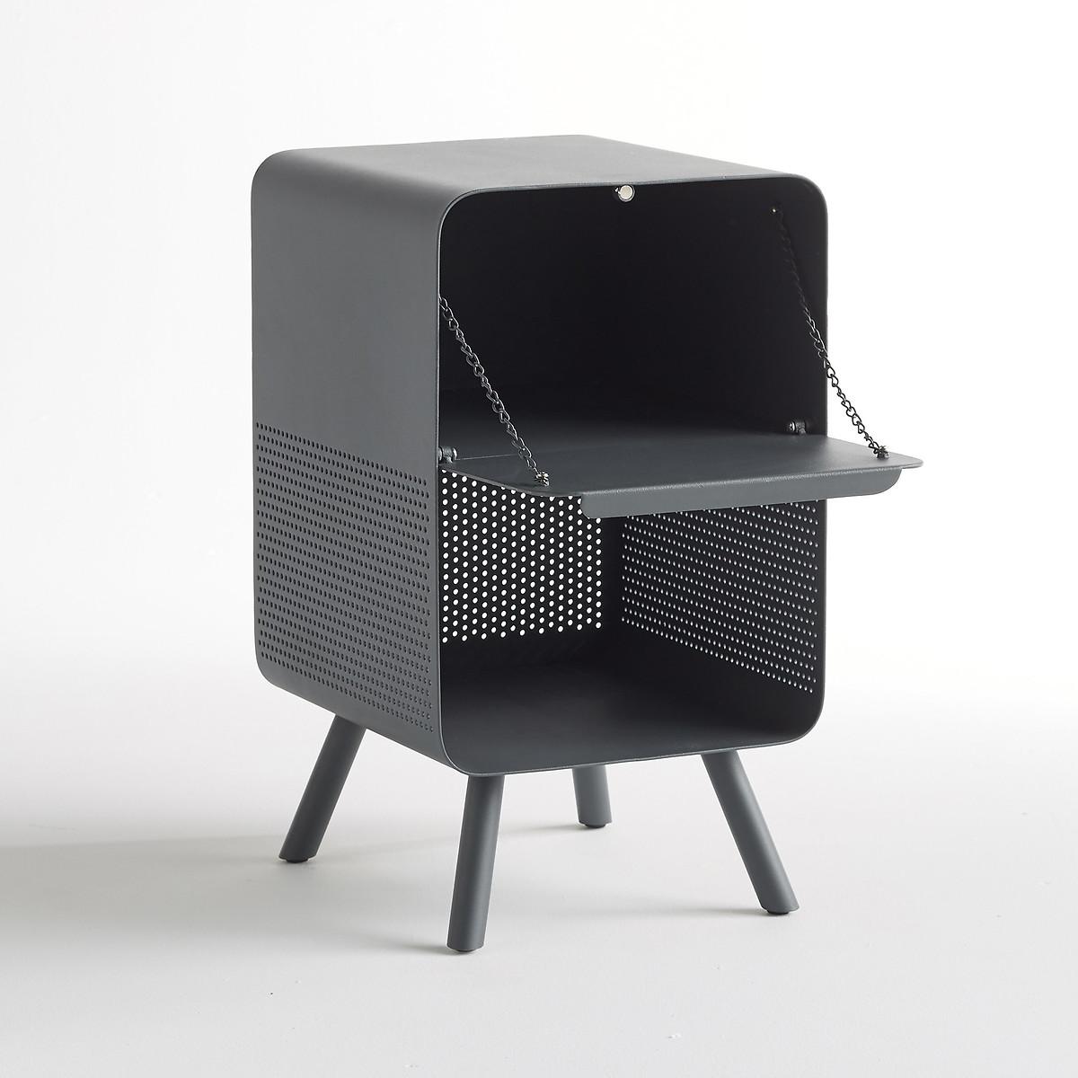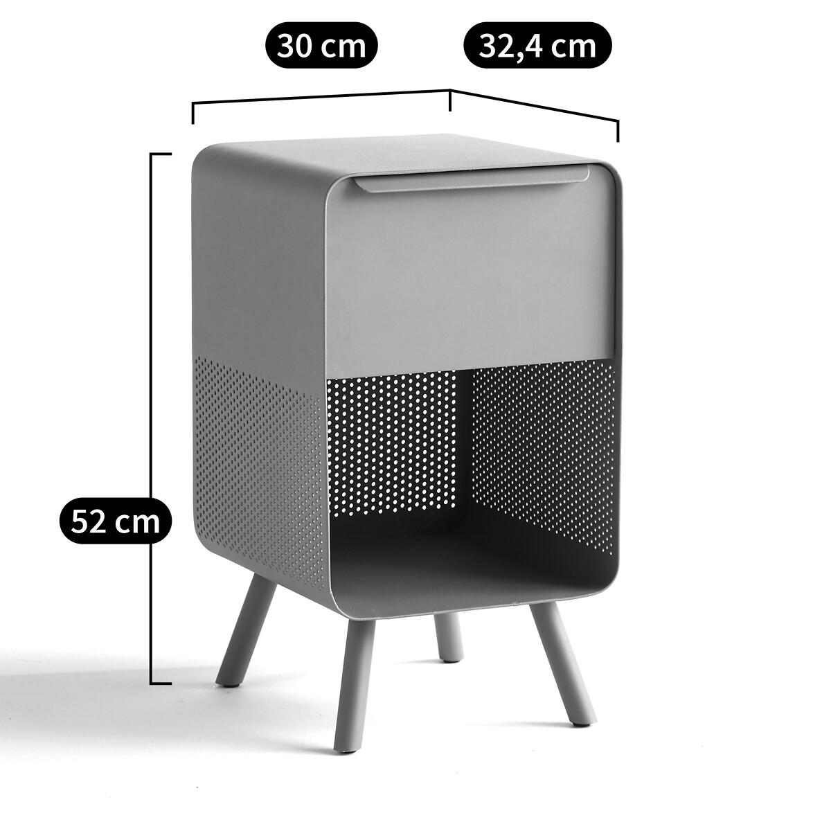 Steel side/bedside table. Industrial style with a mix of solid and perforated metal, it can be used as a bedside table or side table. Product Details • In metal with epoxy powder coating • 1 closed compartment with pull down door, 1 open compartment • Supplied ready assembled. Dimensions • Total: L30 x H52 x D32.4cm • Usable size of compartment: L30 x H18 x D32.4cm Parcel dimensions and weight • L47 x H59 x D47cm • 23.65kg