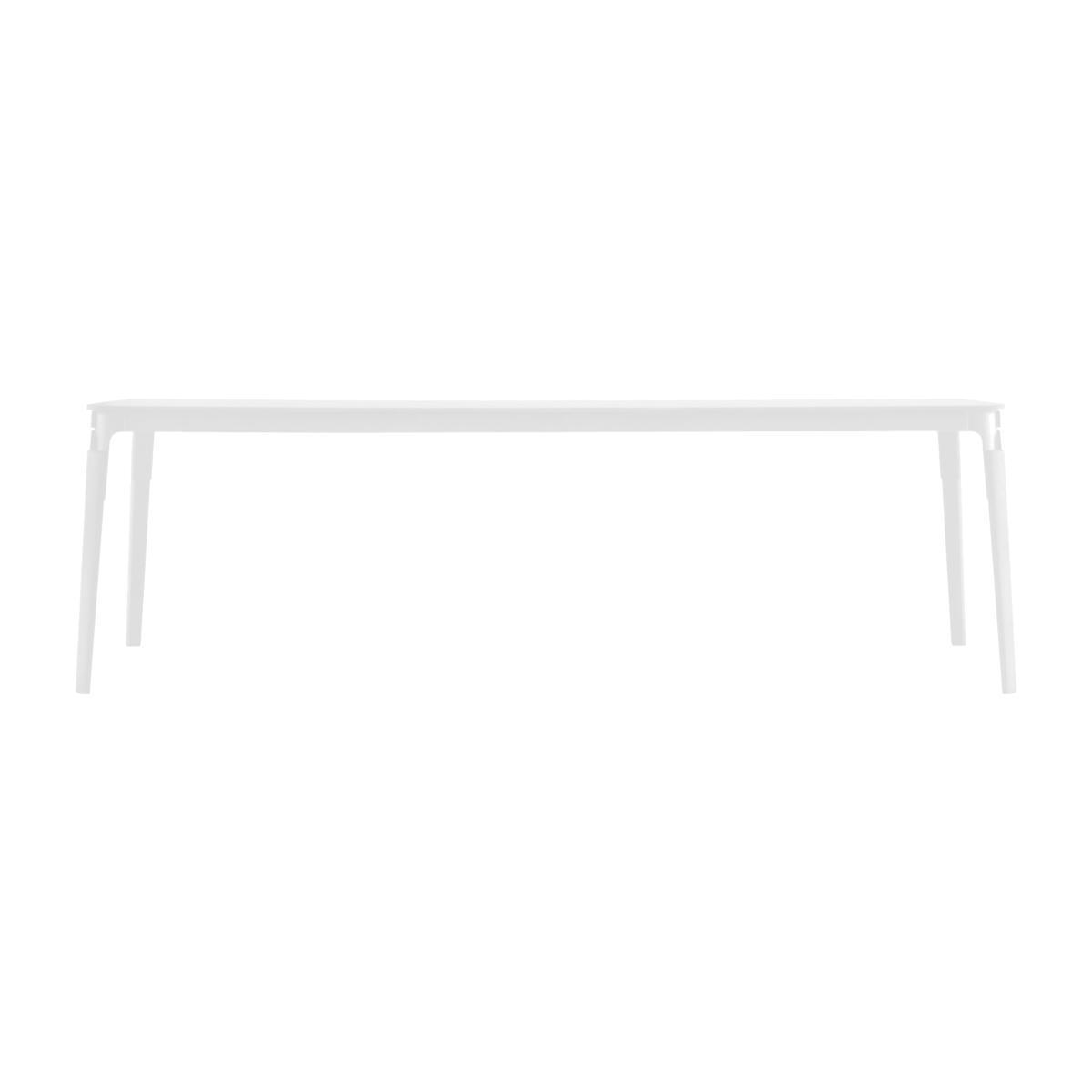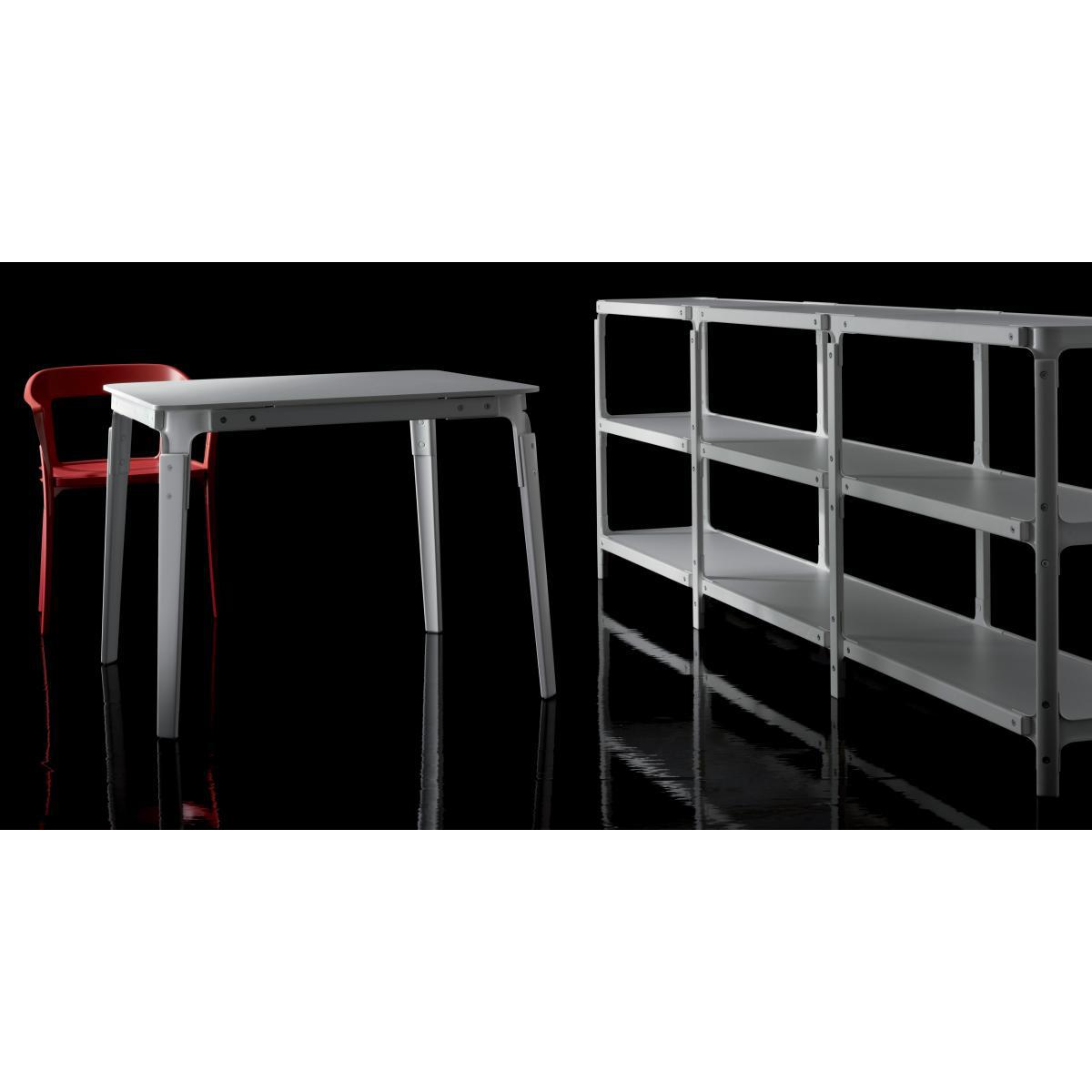The Bouroullecs’ famous Steelwood chair now comes in shelf and table version. As its name implies, Steelwood radically combines steel and wood with assemblages that mix materials that are deliberately highly visible. A very original and surprisingly harmonious combination. The structure and feet are in solid beech painted white. The braces for assembling the uprights of the structure are made of white-painted steel sheet. The top is laminated white HPL. This hybrid silhouette gives off both a sense of modernity and a disturbing sense of familiarity. The Steelwood table forms a perfect set with the chairs from the same collection. The Steelwood table (L 180 cm x W 90 cm x H 76 cm) is also available in a solid black version and a two-tone version: natural beech / white.